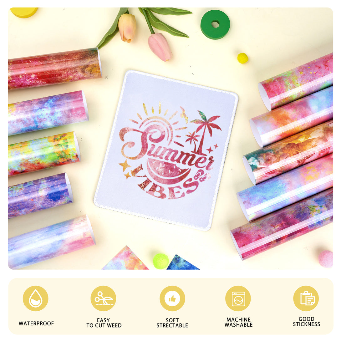 Tintnut Grungy Watercolor Heat Transfer Vinyl Neon Vivid Rainbow Patterned HTV Iron on Vinyl for T-Shirts, Clothing & Bags DIY
