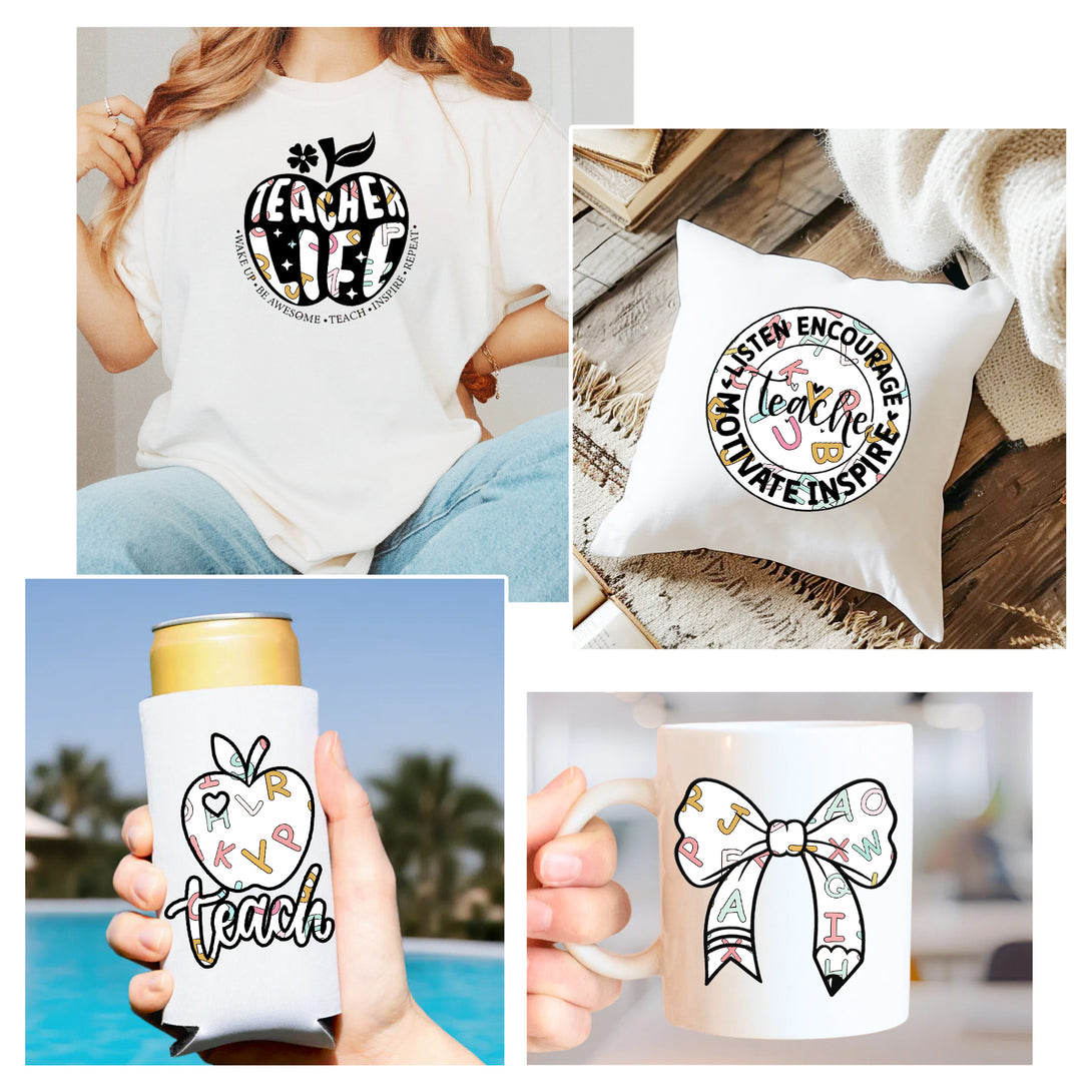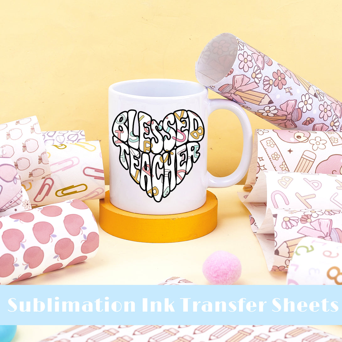 Tintnut Teachers' Day Pattern Sublimation Ink Transfer Sheets,Colorful Letters Sublimation Transfer Paper Compatible with Cricut for DIY Mugs,T-Shirts and Easy to use Transfer.