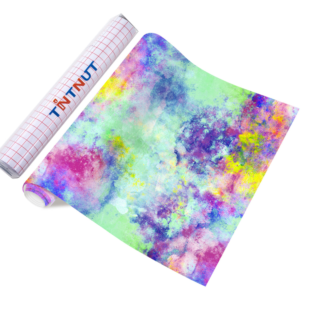 Tintnut Grungy Watercolor Permanent Adhesive Vinyl,Neon Green Mix Pattern Adhesive Vinyl,Home Decor Self Sticker