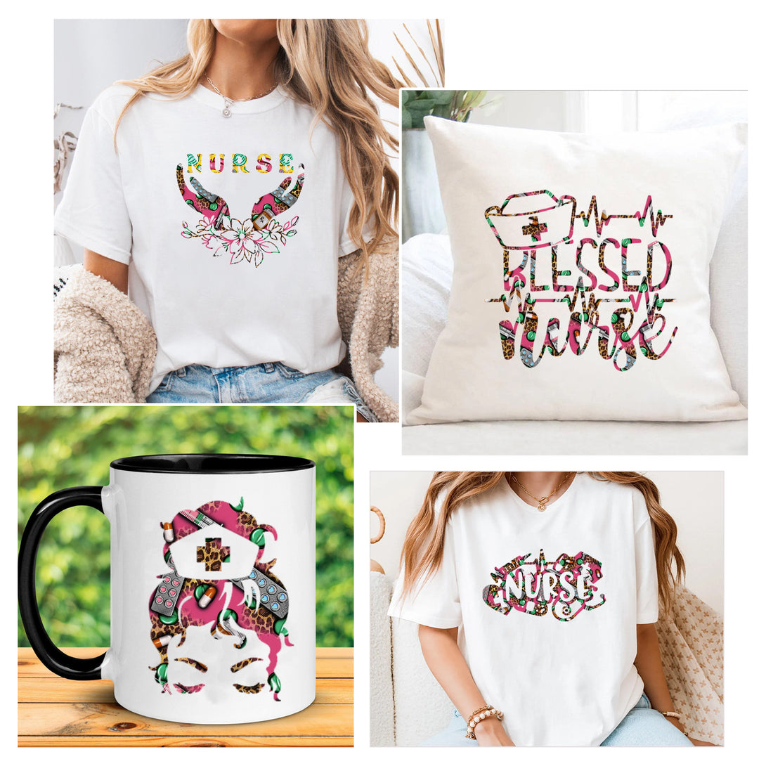 Tintnut Nurses Day Sublimation Transfer Paper,Pink Color Sublimation Transfer Sheets Compatible with Cricut for DIY Mugs,T-Shirts and Easy to use Transfer.