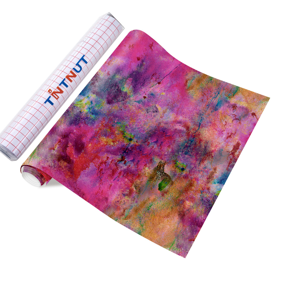 Tintnut Grungy Watercolor Permanent Adhesive Vinyl,Neon Pink Blend Pattern Adhesive Vinyl,Home Decor Self Sticker