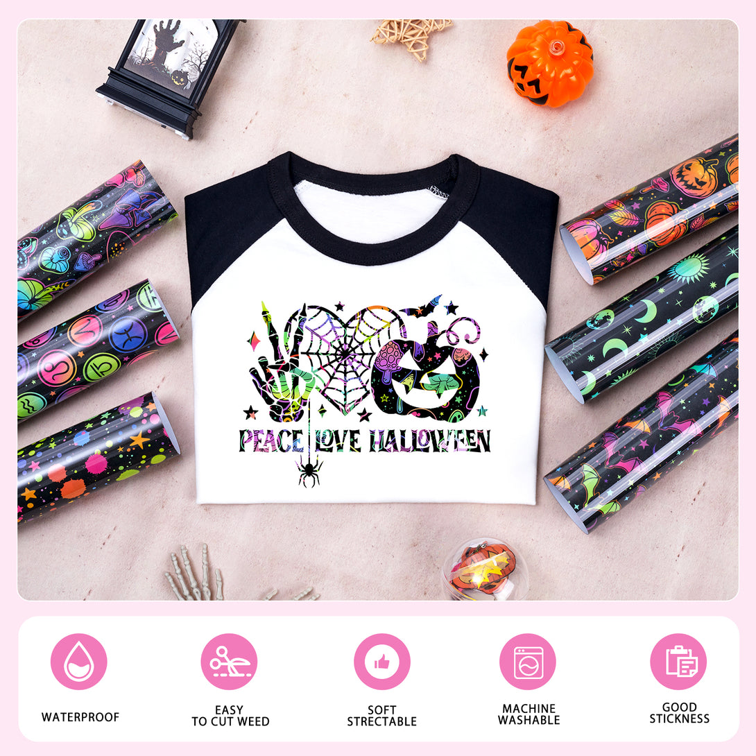 Tintnut Halloween Grow in Dark Colorful Mushroom Heat Transfer Vinyl Patterned HTV for Luminous Iron on Vinyl for T-Shirts Clothing Bags