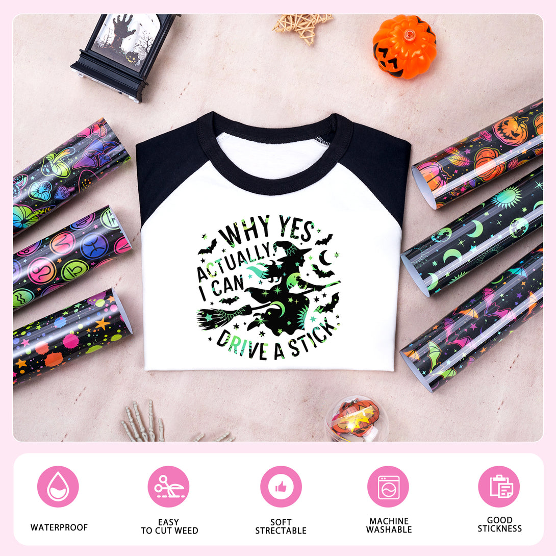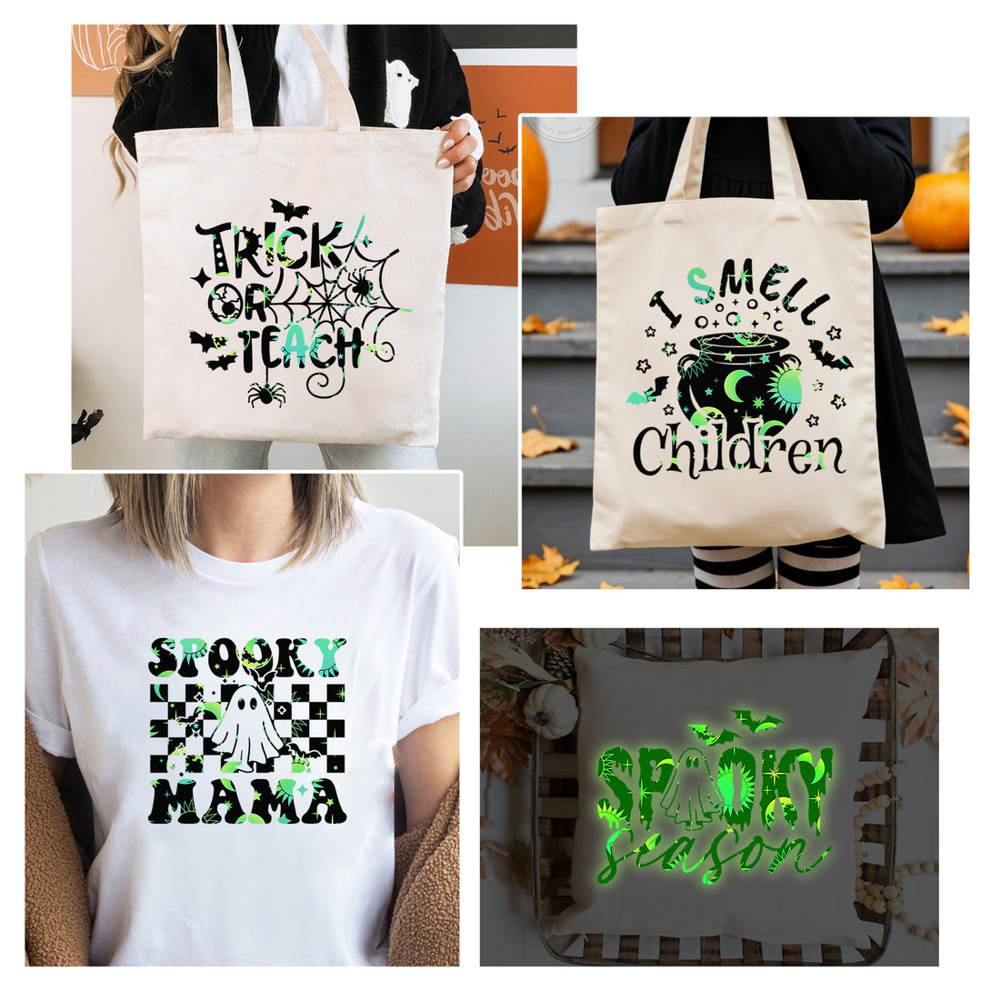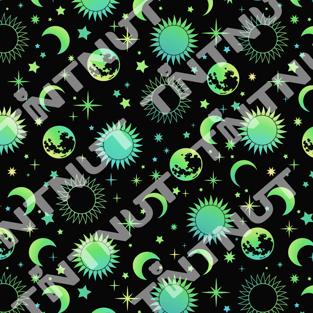 Tintnut Halloween Grow in Dark Green Sun and Moon Heat Transfer Vinyl Patterned HTV for Luminous Iron on Vinyl for T-Shirts Clothing Bags