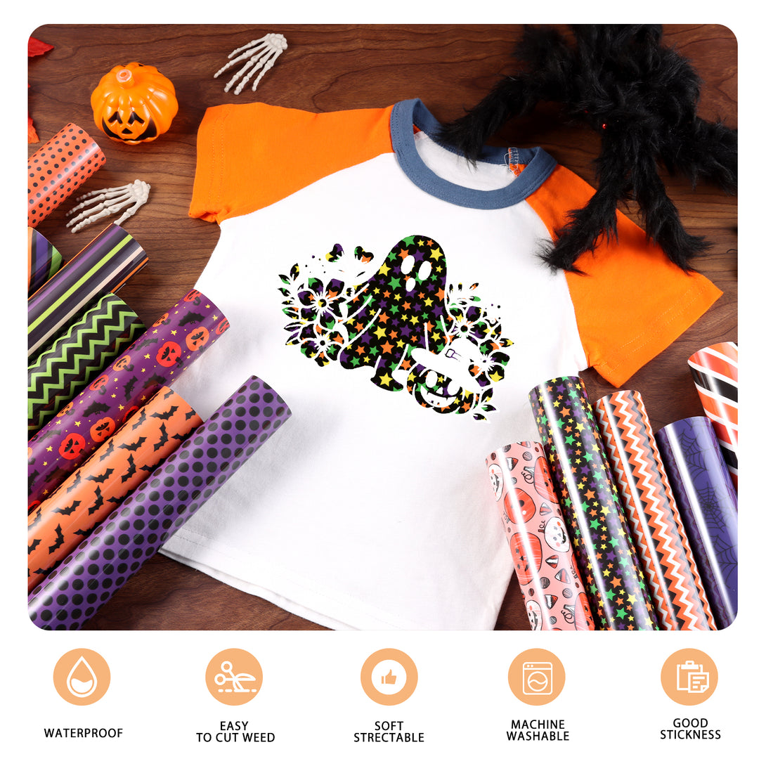 Tintnut Halloween Heat Transfer Vinyl Orange Purple Green HTV Vinyl Iron On Vinyl for T-Shirts Bags DIY