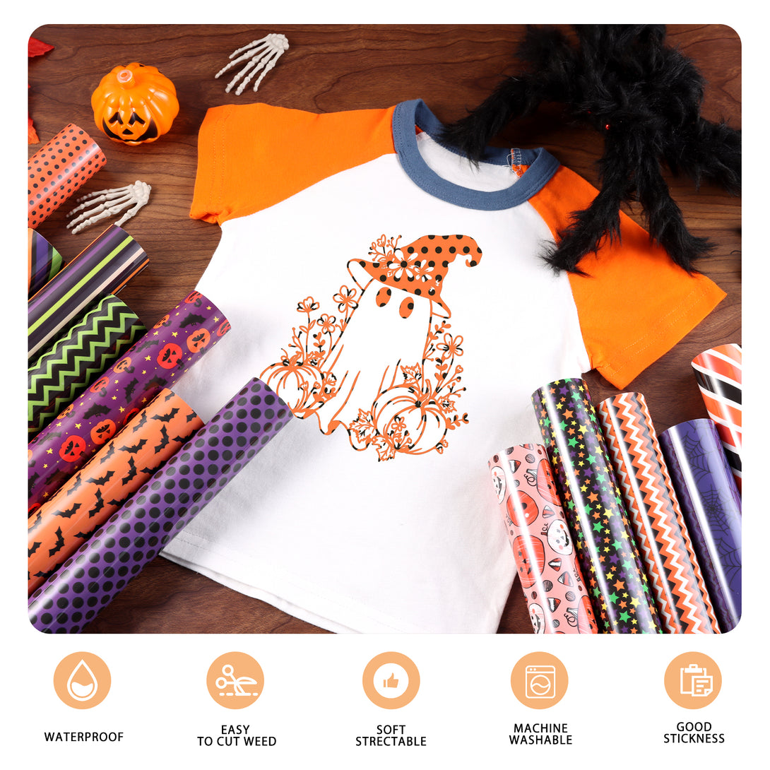 Tintnut Halloween HTV Heat Transfer Vinyl Orange Purple Green HTV Vinyl Iron On Vinyl for T-Shirts Bags DIY