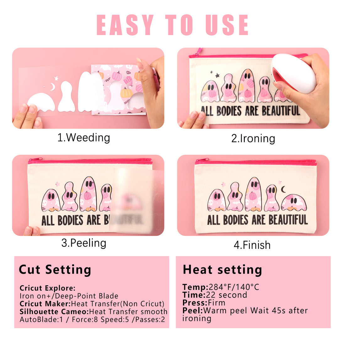 - 【FRIENDLY TO USE】This heat transfer vinyl is easy to cut on any cutting machines. It is aslo design to be easy weed. You can heat firmly with heat press machine and also normal iron to transfer.