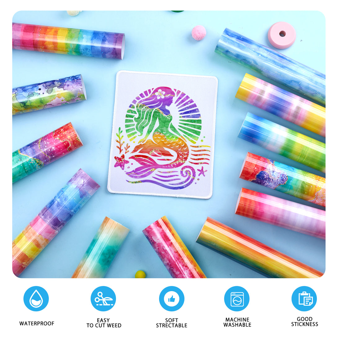 Tintnut Holographic Rainbow Gradient Heat Transfer Vinyl Patterned HTV for Fabric Iron on Vinyl for T-Shirts Clothing