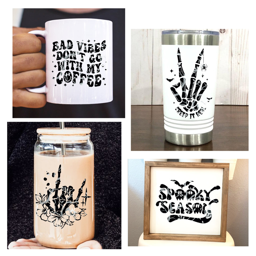 Tintnut Horror Halloween Permanent Adhesive Vinyl,Halloween Patterned Permanent Vinyl,Home Decor Self Sticker