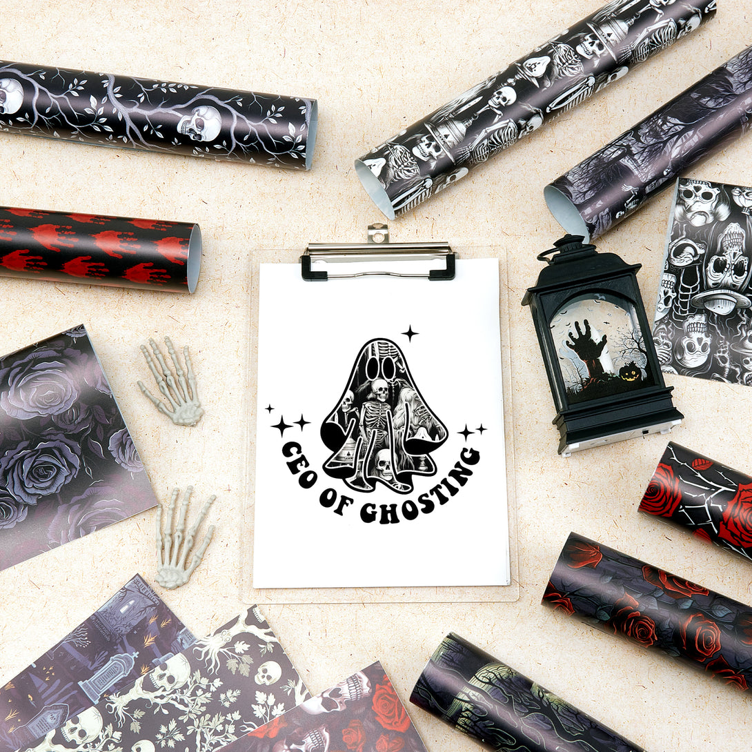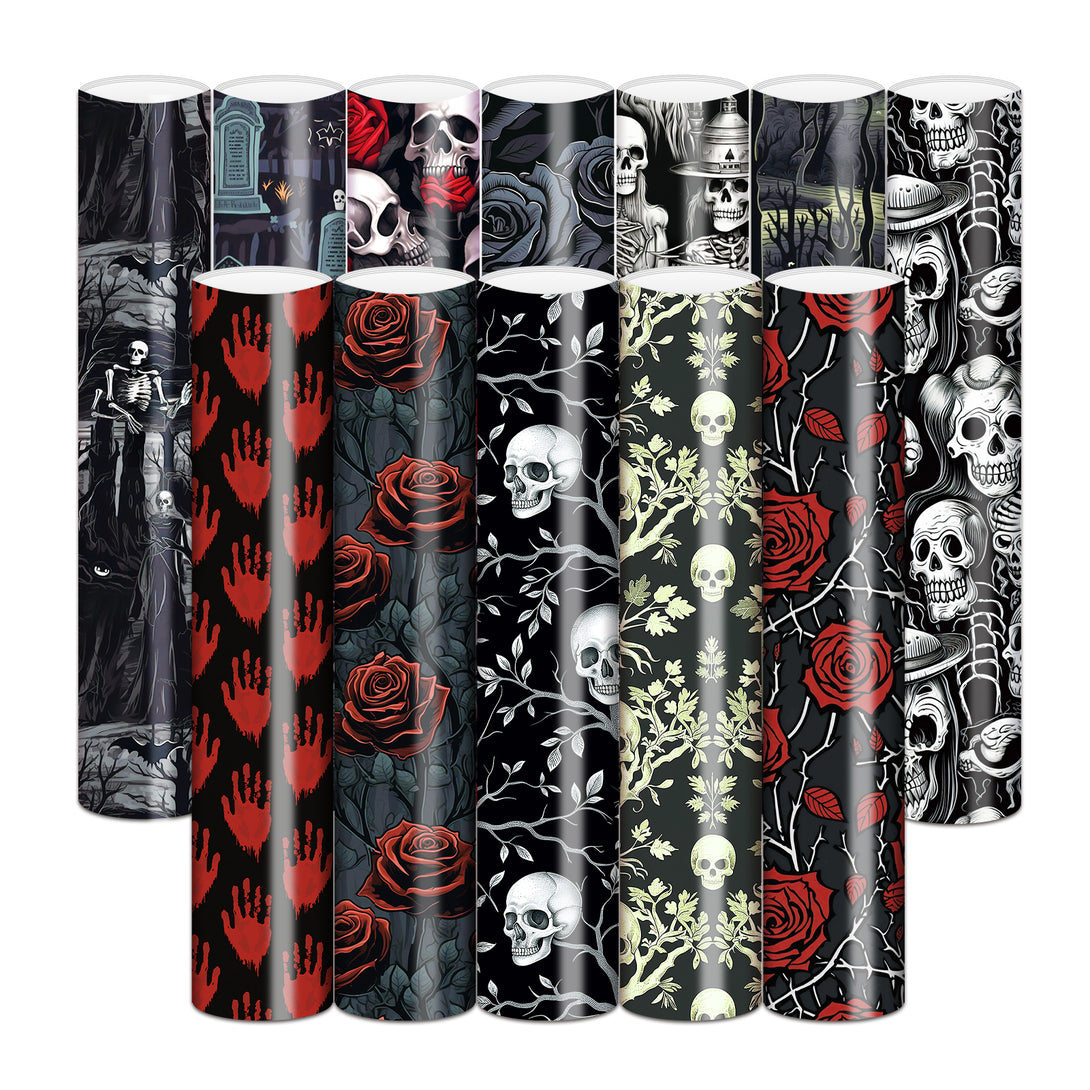 Tintnut Horror Halloween Permanent Vinyl,Halloween Patterned Permanent Adhesive Vinyl for Decor Sticker, Self Sticker Water proofing Vinyl