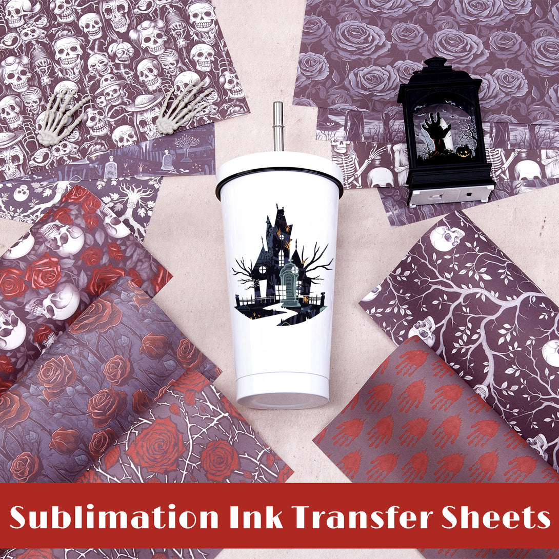Tintnut Horror Halloween Sublimation Transfer Sheets,Halloween Pattern Sublimation Transfer Paper Compatible with ALL Machine and Easy to use Transfer.