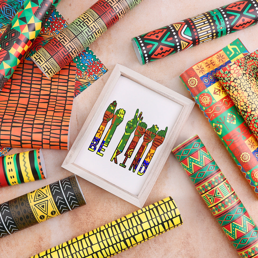 Tintnut Kwanzaa Permanent Vinyl, Kente Pattern Printed Adhesive Vinyl Kwanzaa Permanent Vinyl Sheets Machine for Decor Sticker
