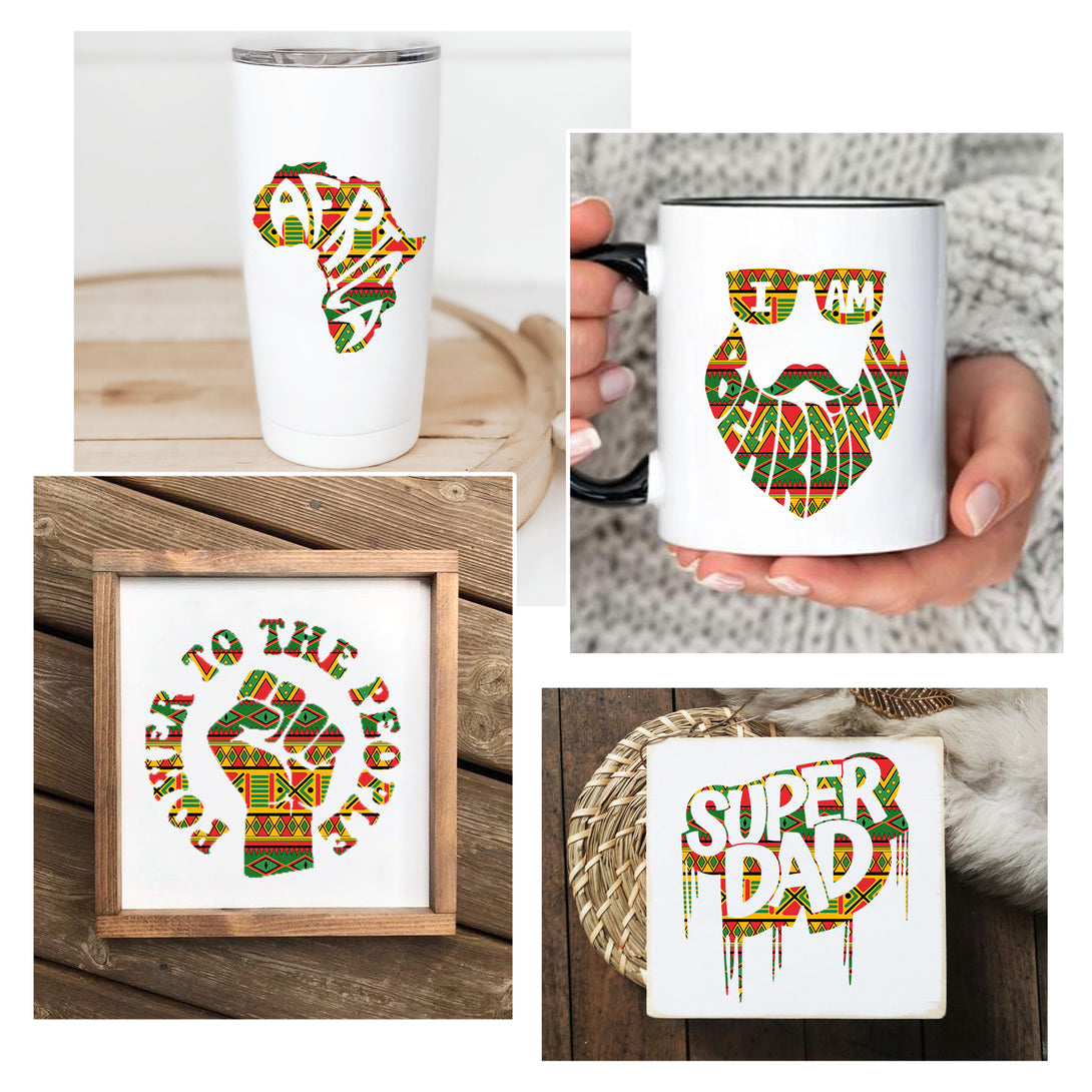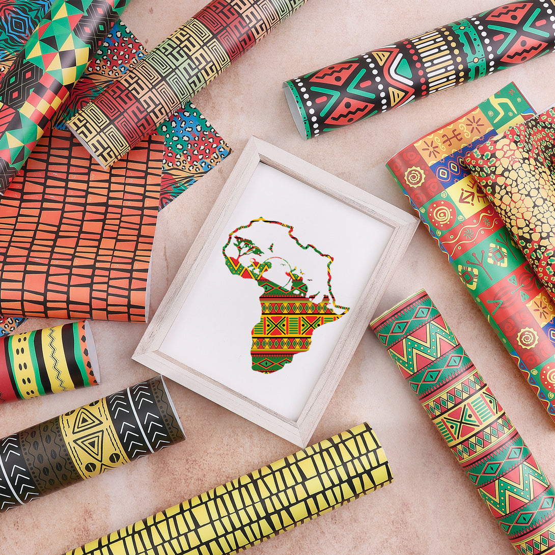 Tintnut Kwanzaa Permanent Vinyl, Kente Pattern Printed Adhesive Vinyl Kwanzaa Vinyl Sheets Machine for Decor Sticker
