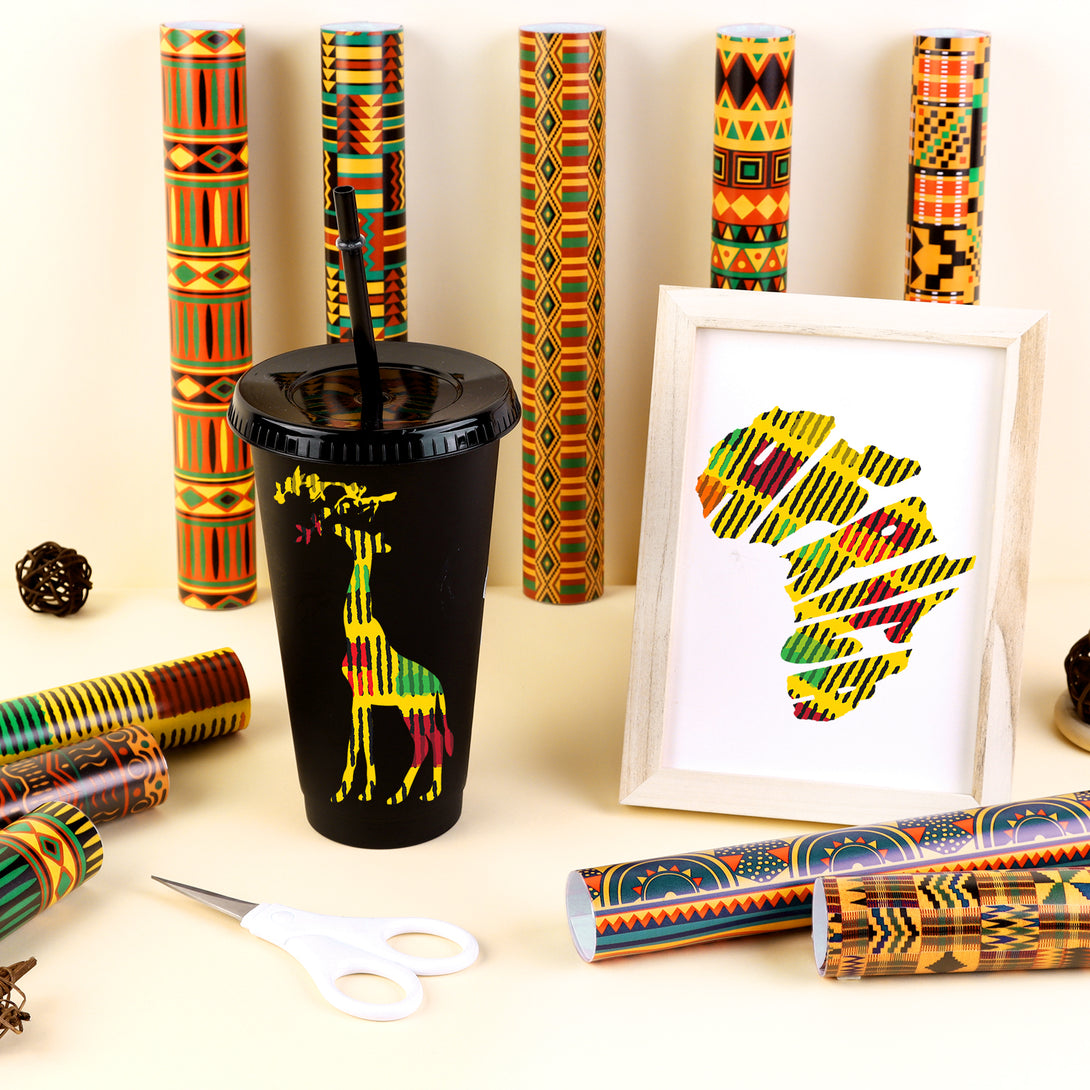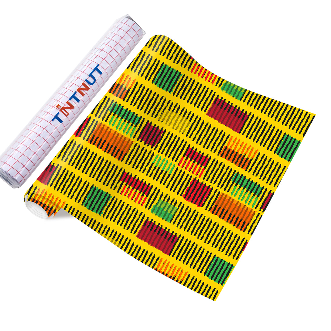 Tintnut Kwanzaa Permanent Vinyl, Kente Pattern Printed Vinyl, Patterned Permanent Adhesive Vinyl Sheets, African Amercian Pattern Vinyl Permanent