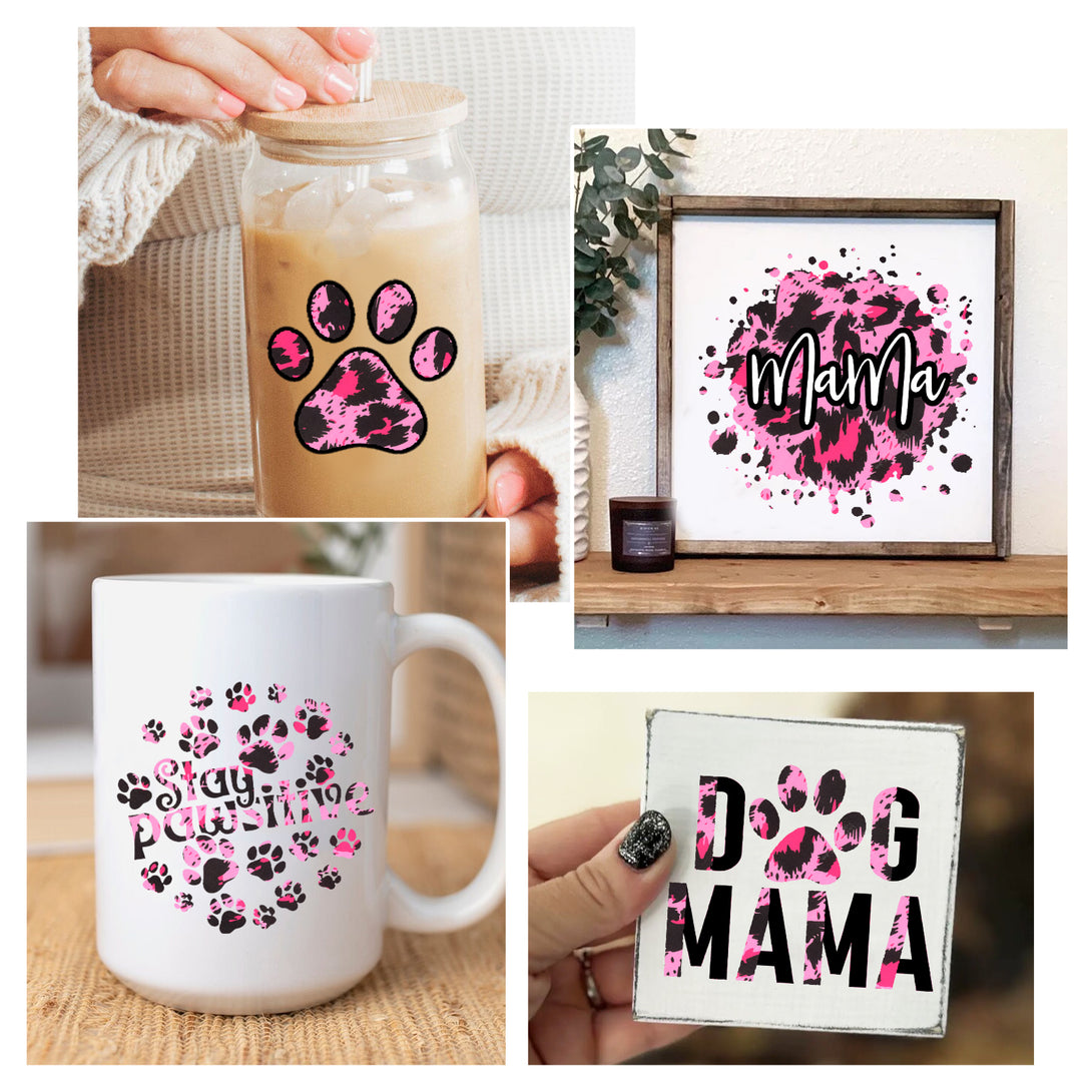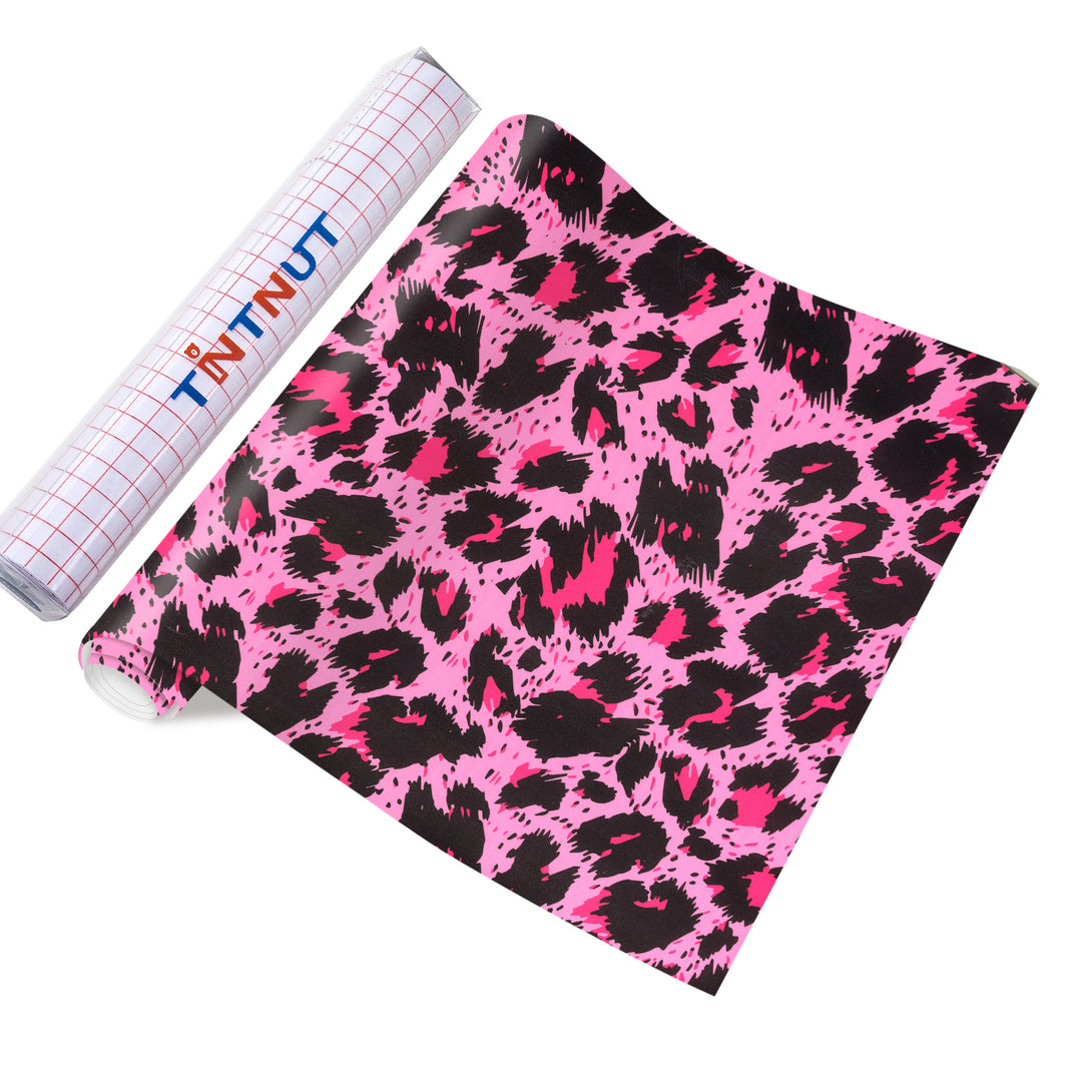 Tintnut Leopard Print Pattern Permanent Vinyl Pink Leopard Pattern Adhesive Vinyl for Mugs Decors Self Adhesive Vinyl