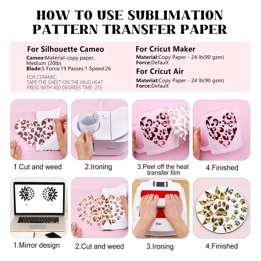 - 【Easy to Cut and Transfer】Our sublimation transfer sheets can easily weed and transfer your design and perfectly suited most machine.The most important,our product are convenience that is simple and easy to transfer and use.
