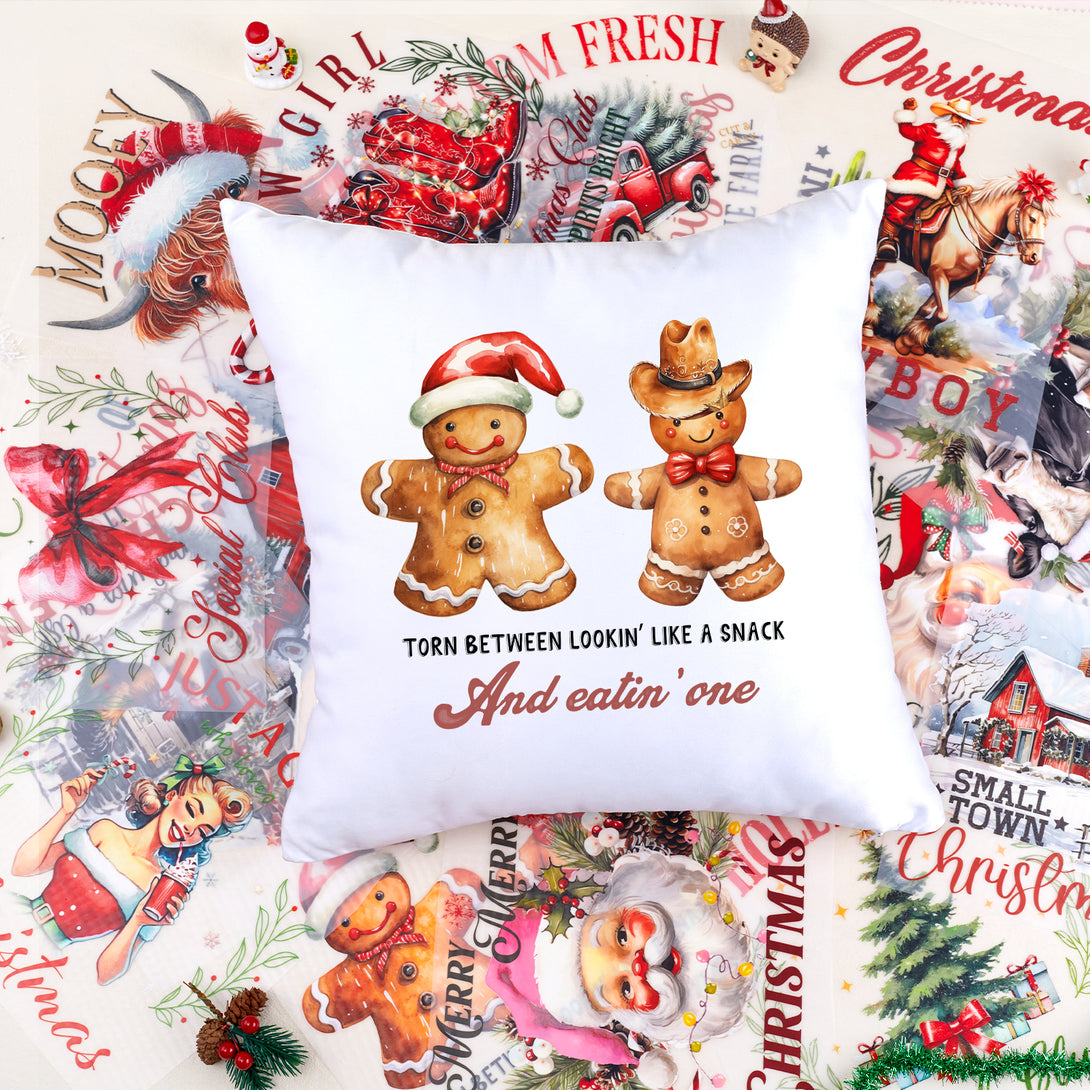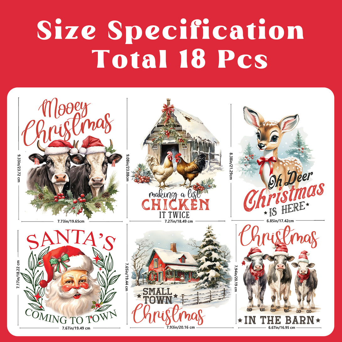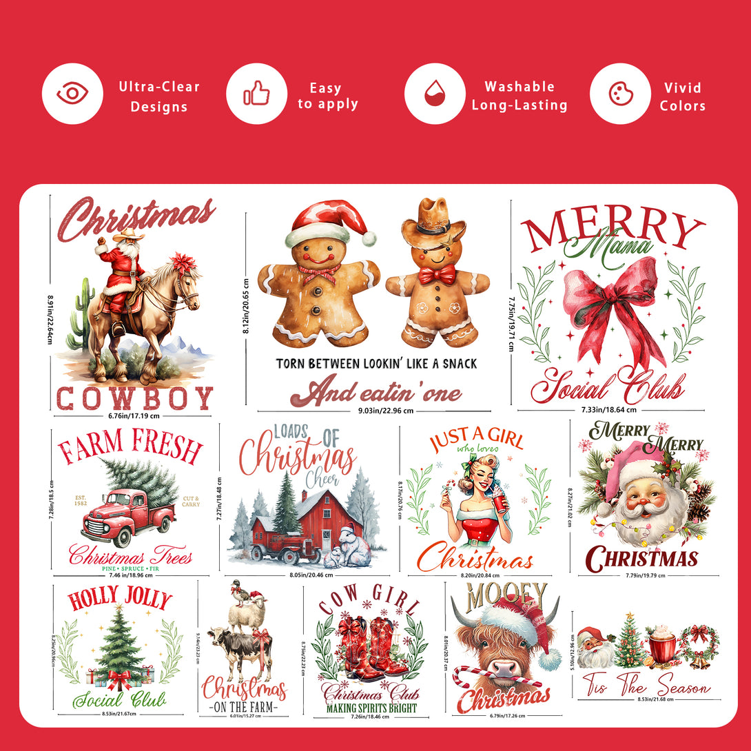 Tintnut Line Art Christmas DTF Transfers Ready to Press Iron on Transfers-18 Sheets Christmas Pattern Iron on Decals for T-Shirts Clothing Heat Transfer Iron on Stickers for Canvas Bag Design
