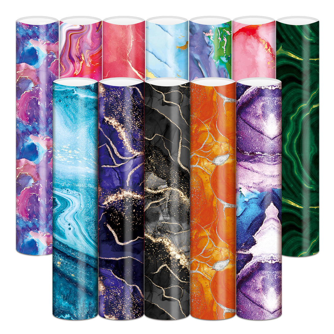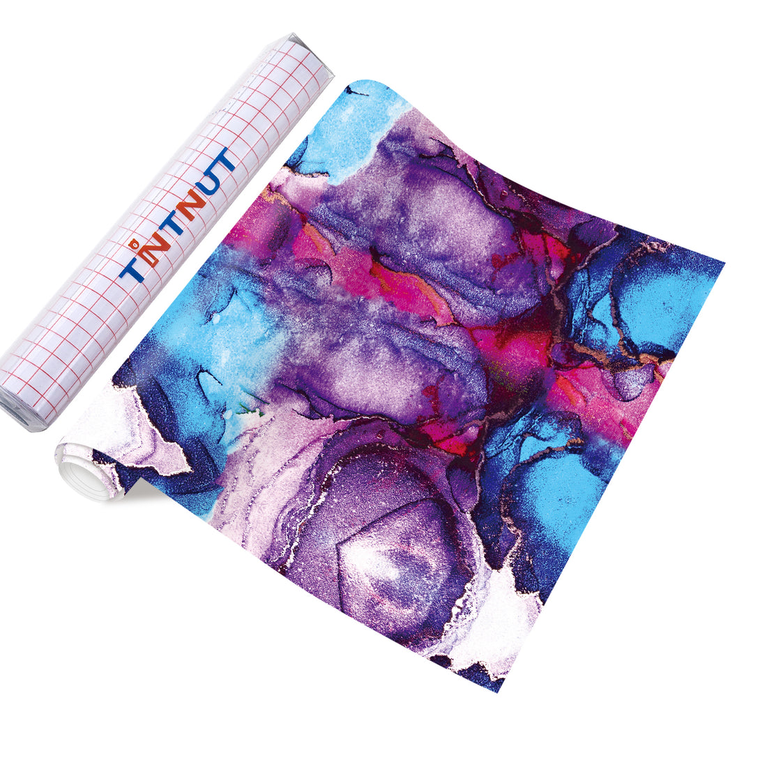 Tintnut Marble Permanent Vinyl, Blue Purple Marble Adhesive Vinyl Sheets, Watercolor Gold Pattern Self Sticker Water proofing Vinyl