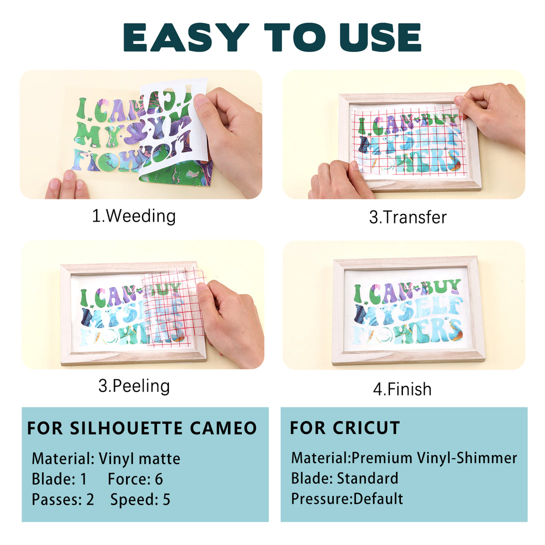 【Working Easy on Cut, Weed & Transfer】This adhesive vinyl is working easily on cut, weed and transfer your designs. Make it easier to do it yourself.