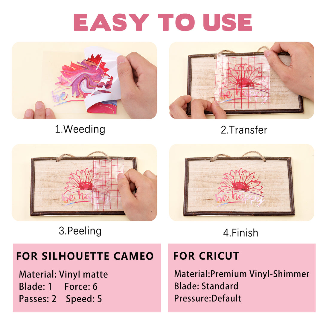 【Working Easy on Cut, Weed & Transfer】This adhesive vinyl is working easily on cut, weed and transfer your designs. Make it easier to do it yourself.