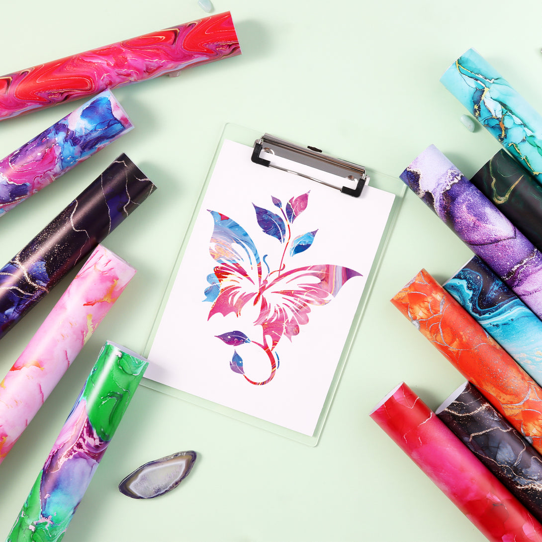 Tintnut Marble Permanent Vinyl, Red Blue Adhesive Vinyl Sheets, Watercolor Gold Pattern Self Sticker Water proofing Vinyl