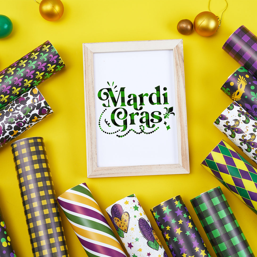 Tintnut Mardi Gras Adhesive Vinyl, Masquerade Mask Pattern Vinyl, Fleur-De-Lis Prints Carnival Outdoor Vinyl for Decor Self Sticker