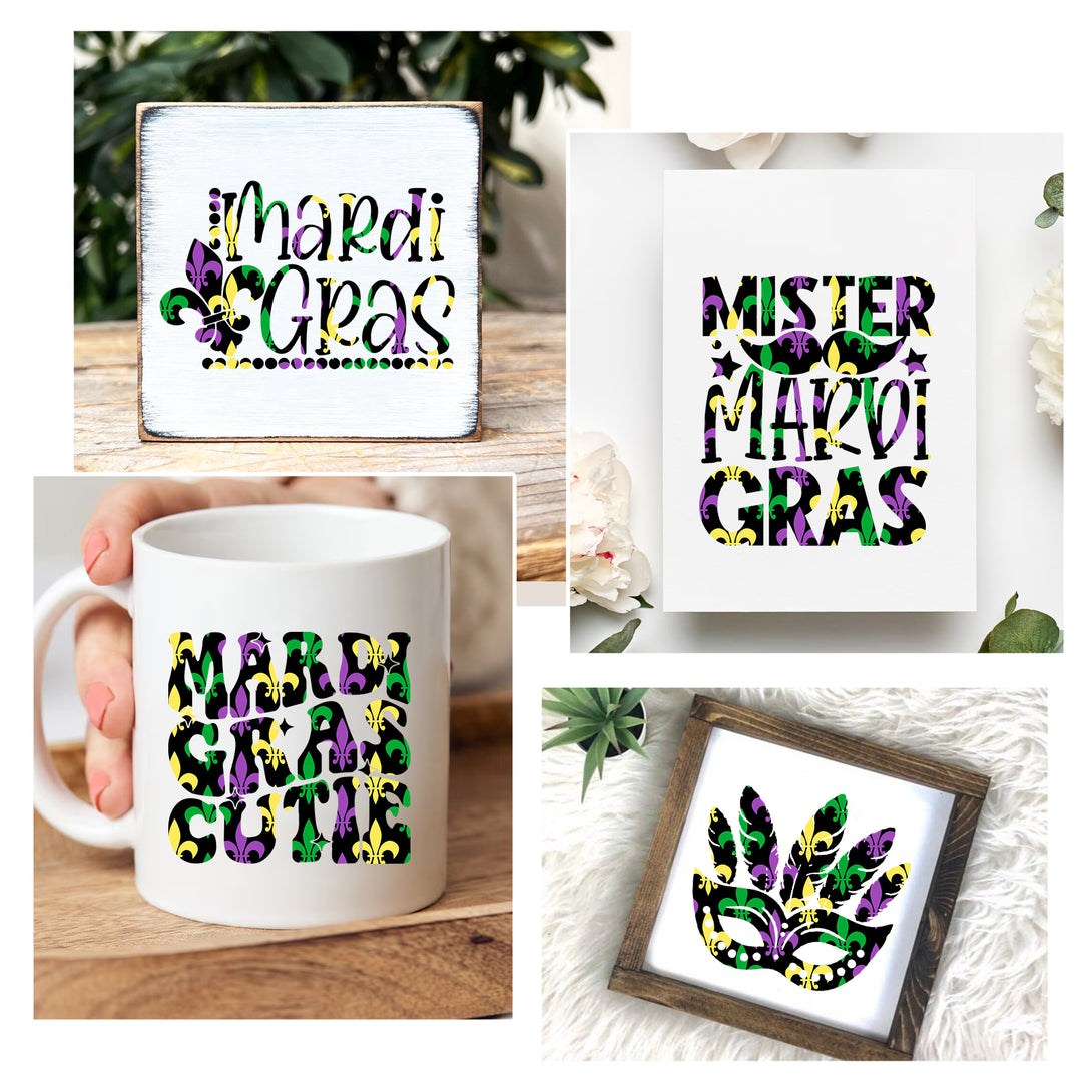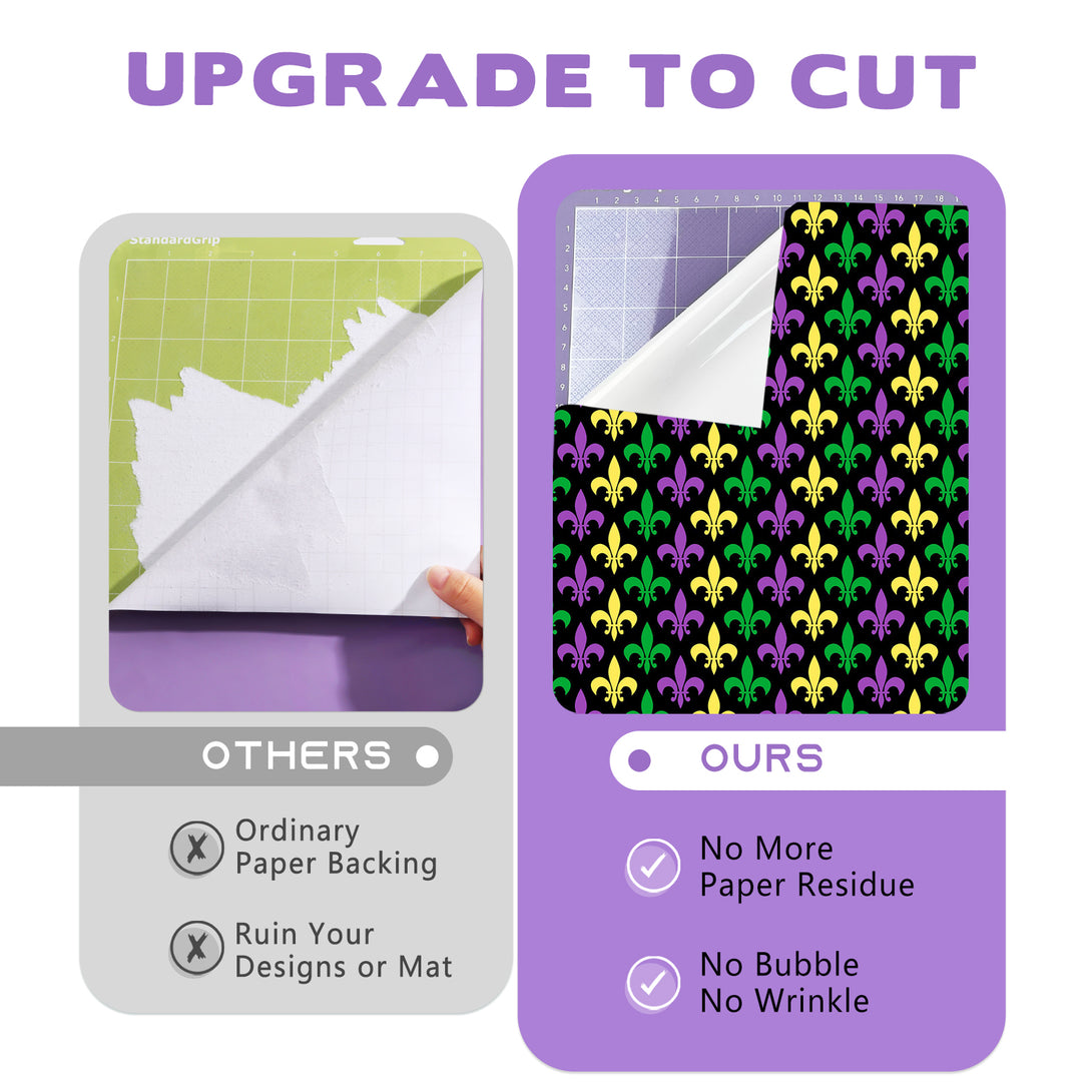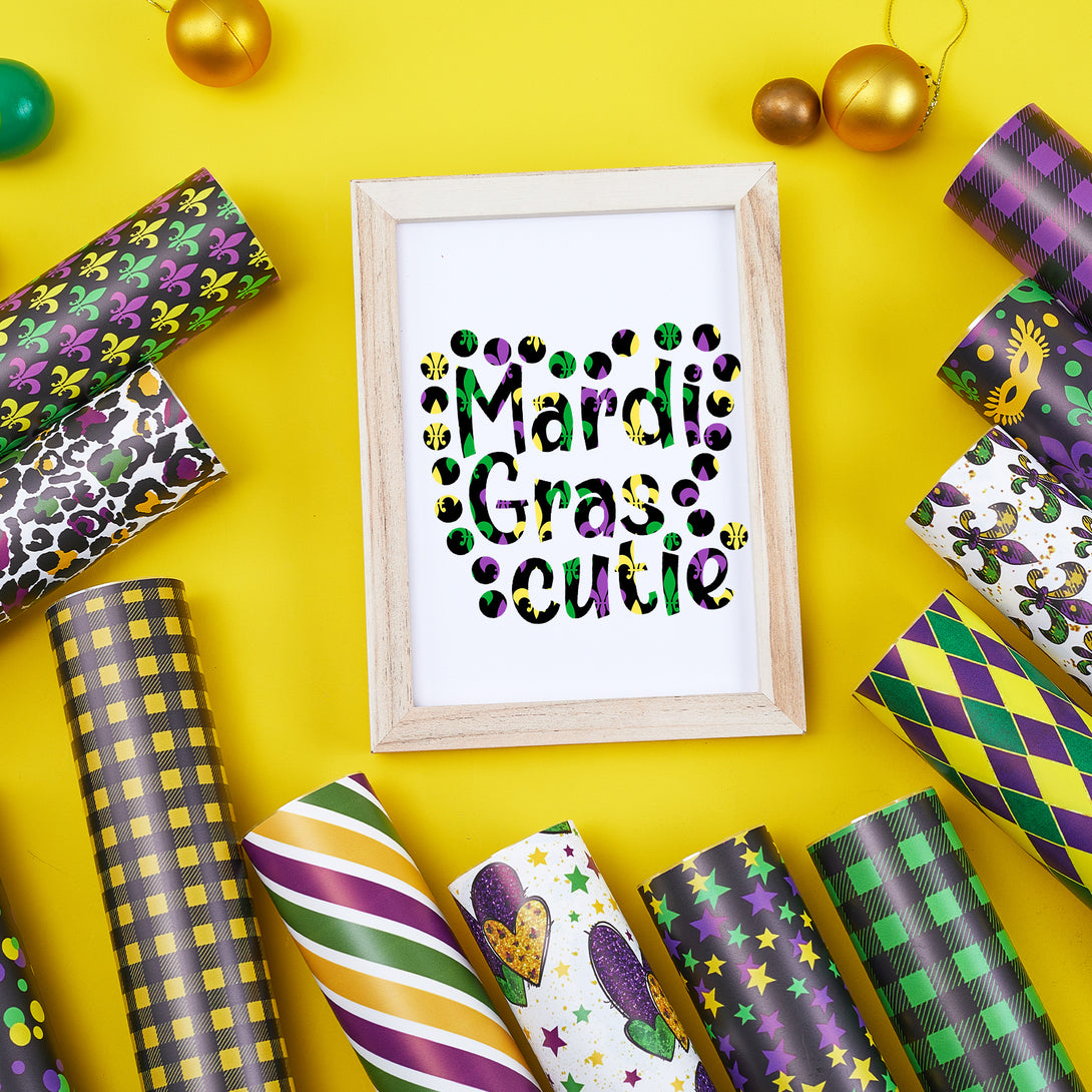 Tintnut Mardi Gras Permanent Vinyl, Masquerade Mask Pattern Adhesive Vinyl, Fleur-De-Lis Prints Carnival Vinyl for Decor Self Sticker