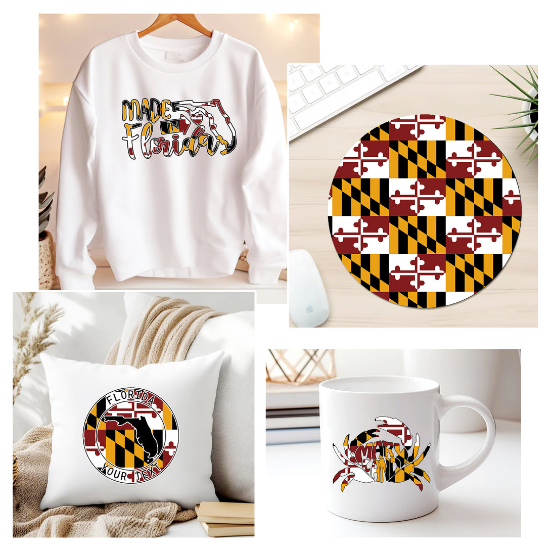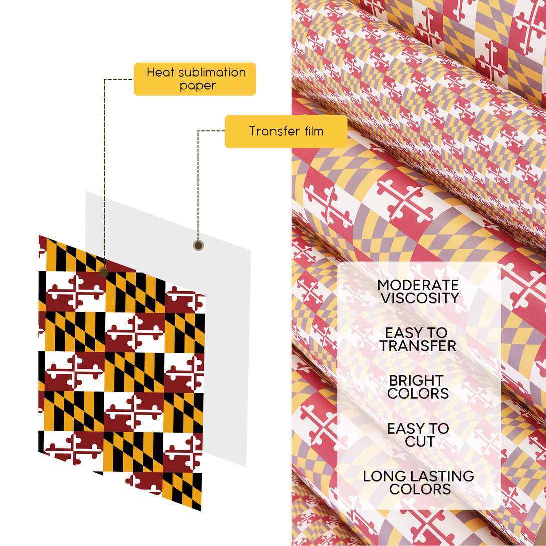 Tintnut Maryland Flag Pattern Sublimation Transfer Paper,Sublimation Ink Transfer Sheets Compatible with ALL Machine and Easy to use Transfer.