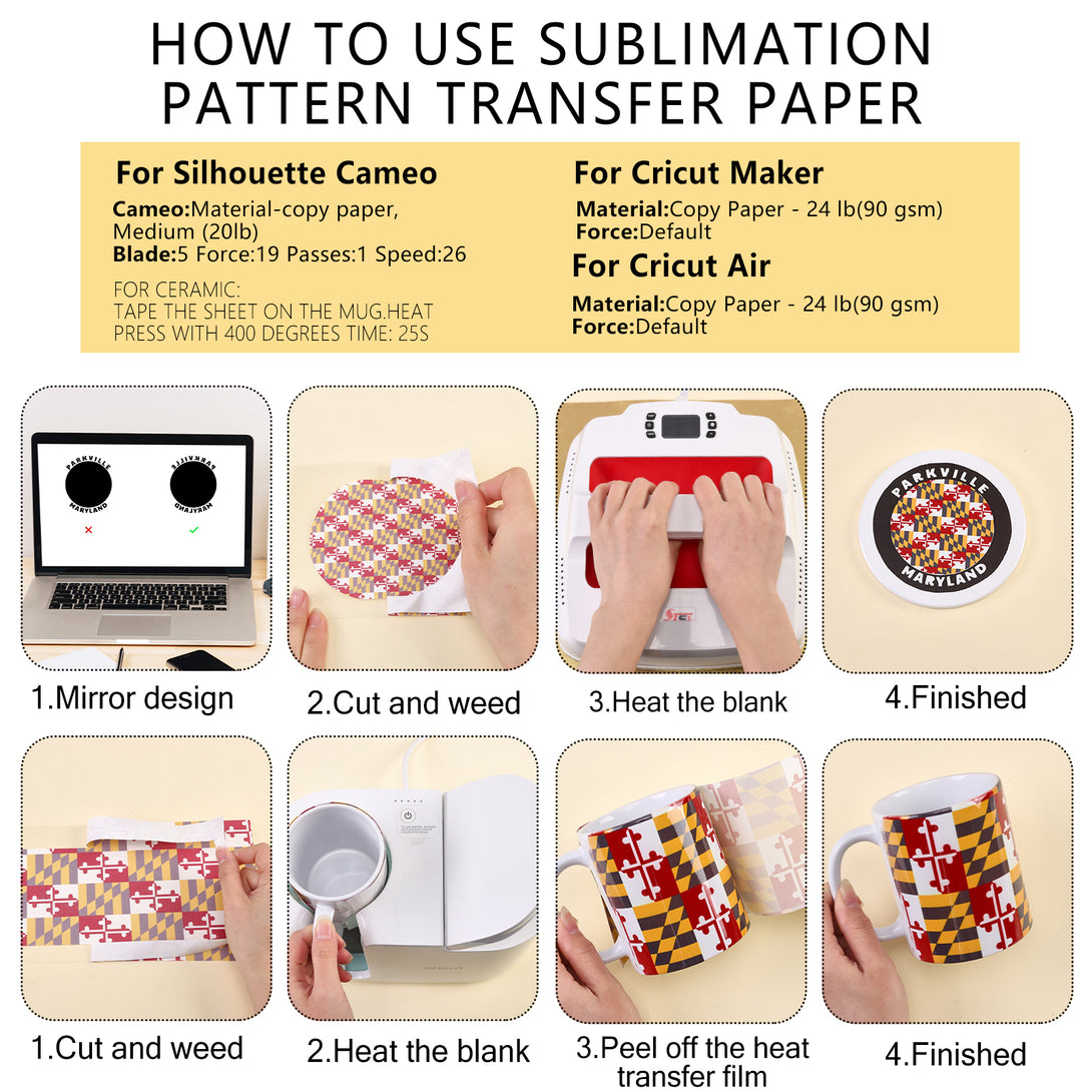 - 【Easy to Cut and Transfer】Our sublimation transfer sheets can easily weed and transfer your design and perfectly suited most machine.The most important,our product are convenience that is simple and easy to transfer and use.