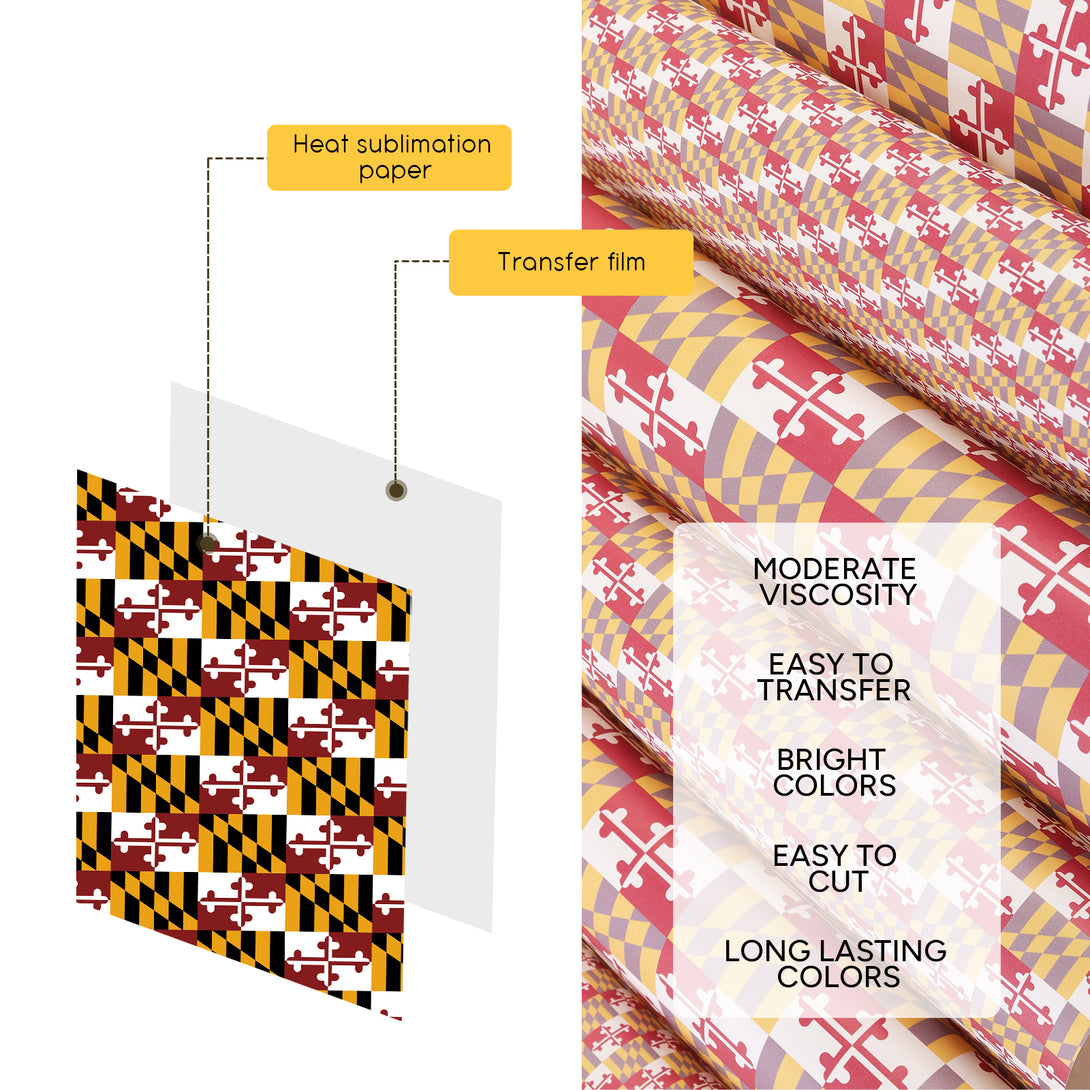 Tintnut Maryland Flag Pattern Sublimation Transfer Paper,Sublimation Ink Transfer Sheets Compatible with ALL Machine and Easy to use Weed.