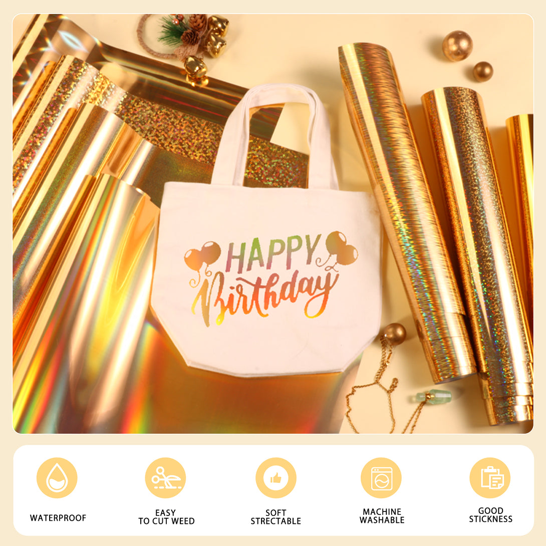 Tintnut Metallic HTV Vinyl Heat Transfer Gold Vinyl Heat Transfer Bundle Chrome HTV Vinyl Foil Holographic Gold Iron On Vinyl for T-Shirts DIY