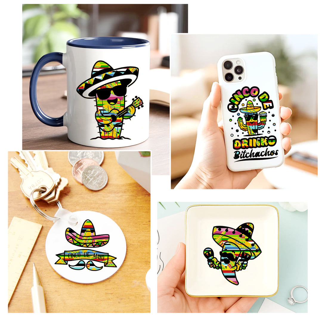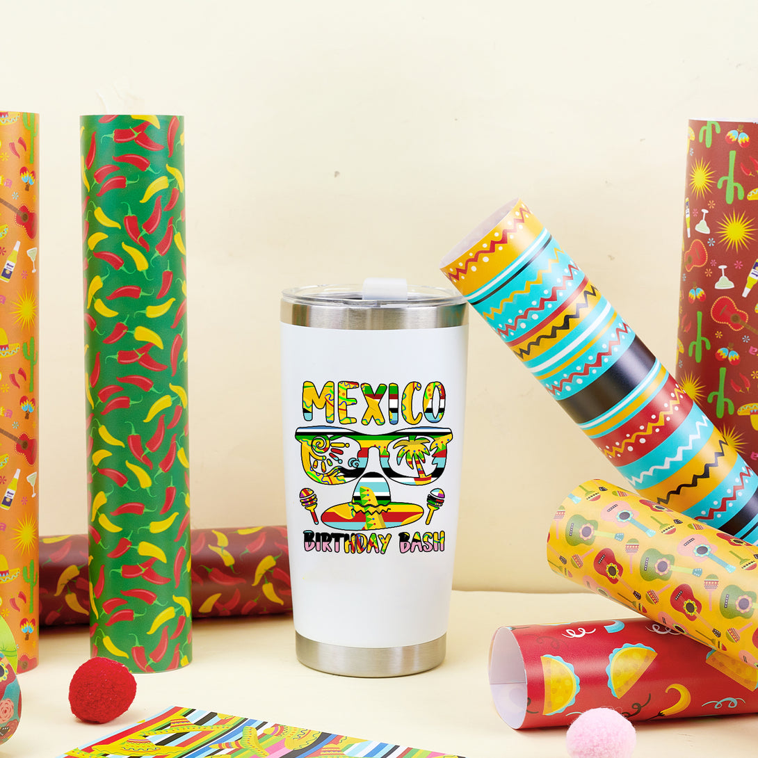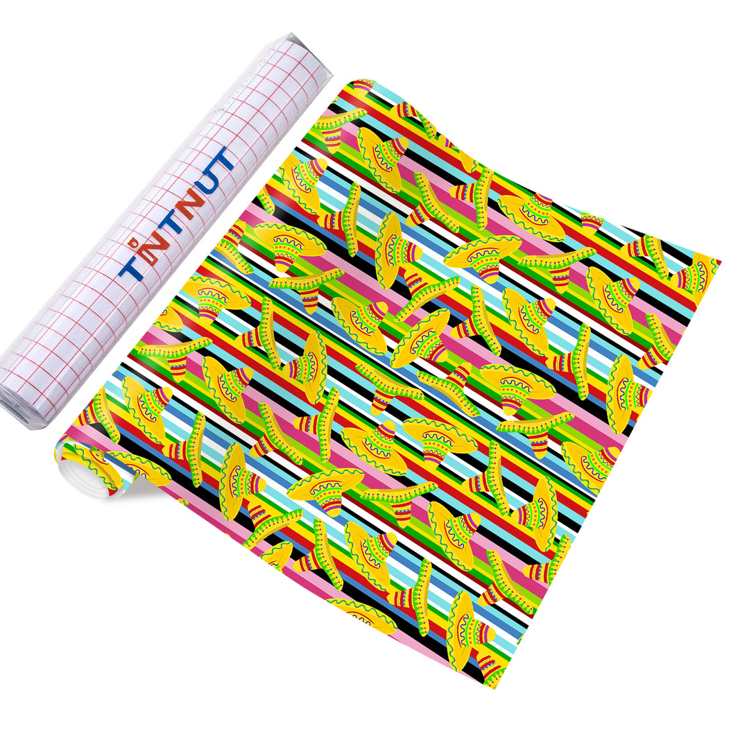Tintnut Mexican Classic Striped Colored Hat Pattern Permanent Adhesive Vinyl Sheets Self Sticker Water proofing Vinyl for DIY