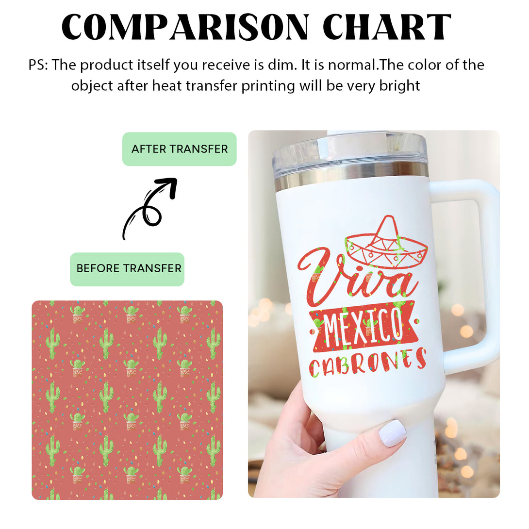 Tintnut Mexican Classic Sublimation Transfer Paper,Red Cactus Sublimation Transfer Sheets Compatible with Cricut for DIY Mugs,T-Shirts and Easy to use Transfer.