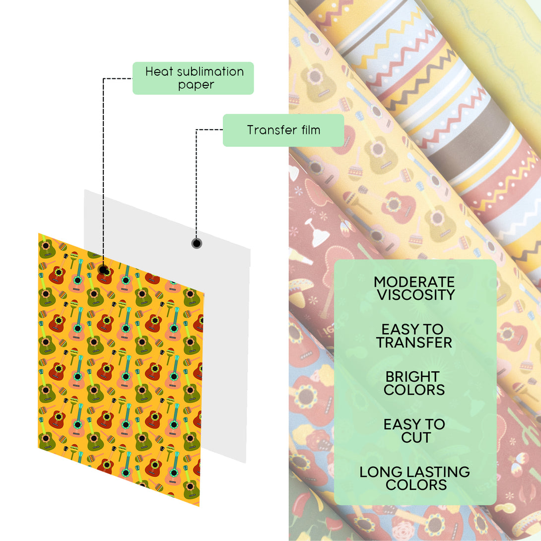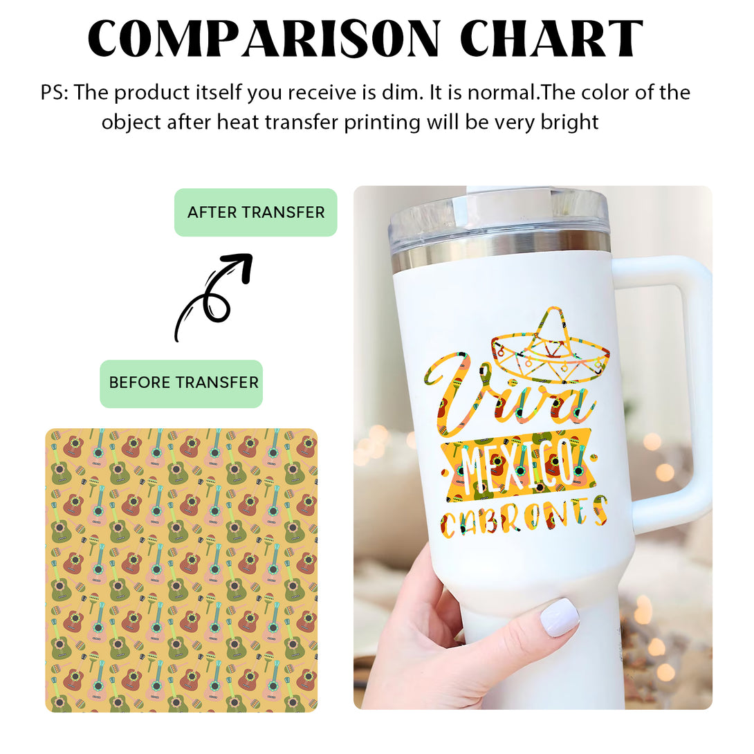 Tintnut Mexican Classic Sublimation Transfer Paper,Yellow Guitar Sublimation Transfer Sheets Compatible with Cricut for DIY Mugs,T-Shirts and Easy to use Transfer.
