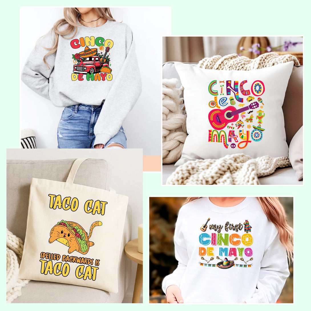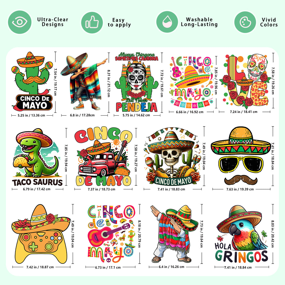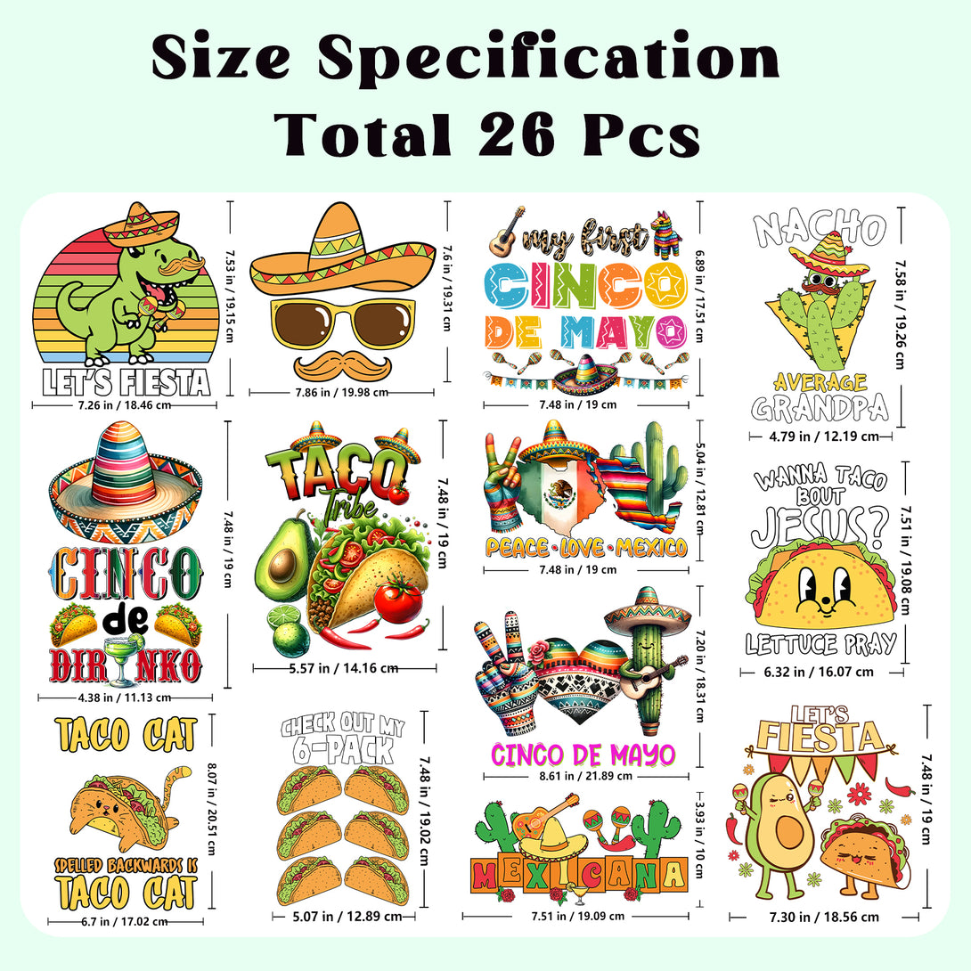 Tintnut Mexican DTF Transfers Ready to Press Iron on Transfers-26 Sheets Food Pattern Iron on Decals for T-Shirts Clothing Heat Transfer Iron on Stickers for Canvas Bag Design