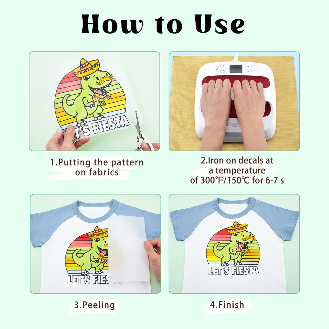 - [EASY OPERATION]1.Choose your favorite pattern to match freely 2.Preheating carrier for a smooth surface 3.Place the sticker on the carrier, refer to the operating instructions for temperature settings and time to heat, and finally remove the protective film,You'll get a craft of your choice
