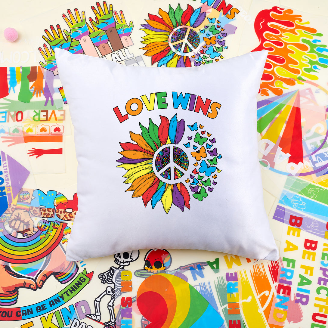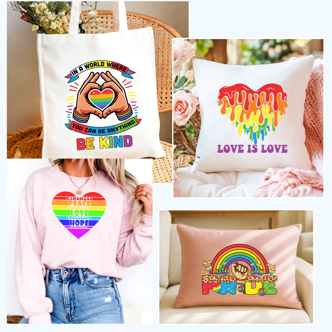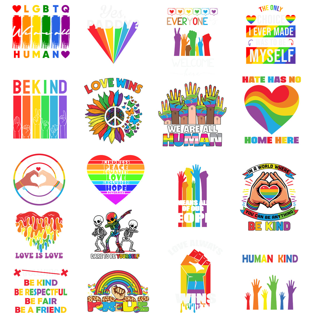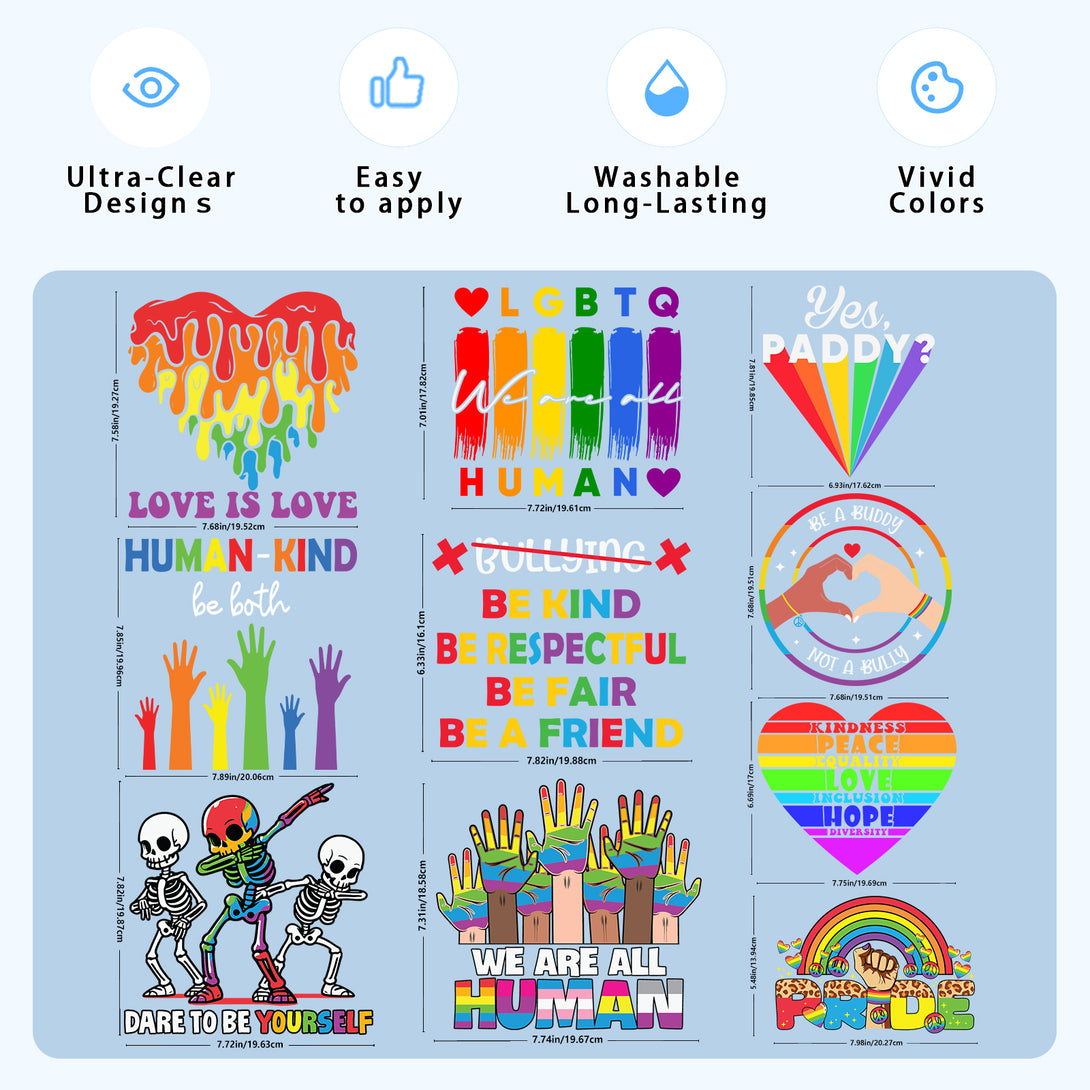 Tintnut Minimalist Rainbow DTF Transfers Ready to Press Iron on Transfers-18 Sheets Rainbow Love Pattern Iron on Decals for T-Shirts Clothing Heat Transfer Iron on Stickers for Canvas Bag Design