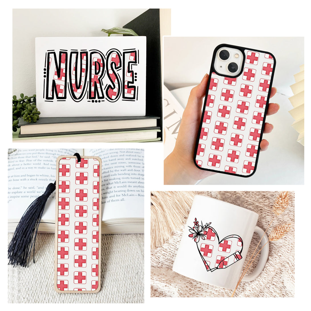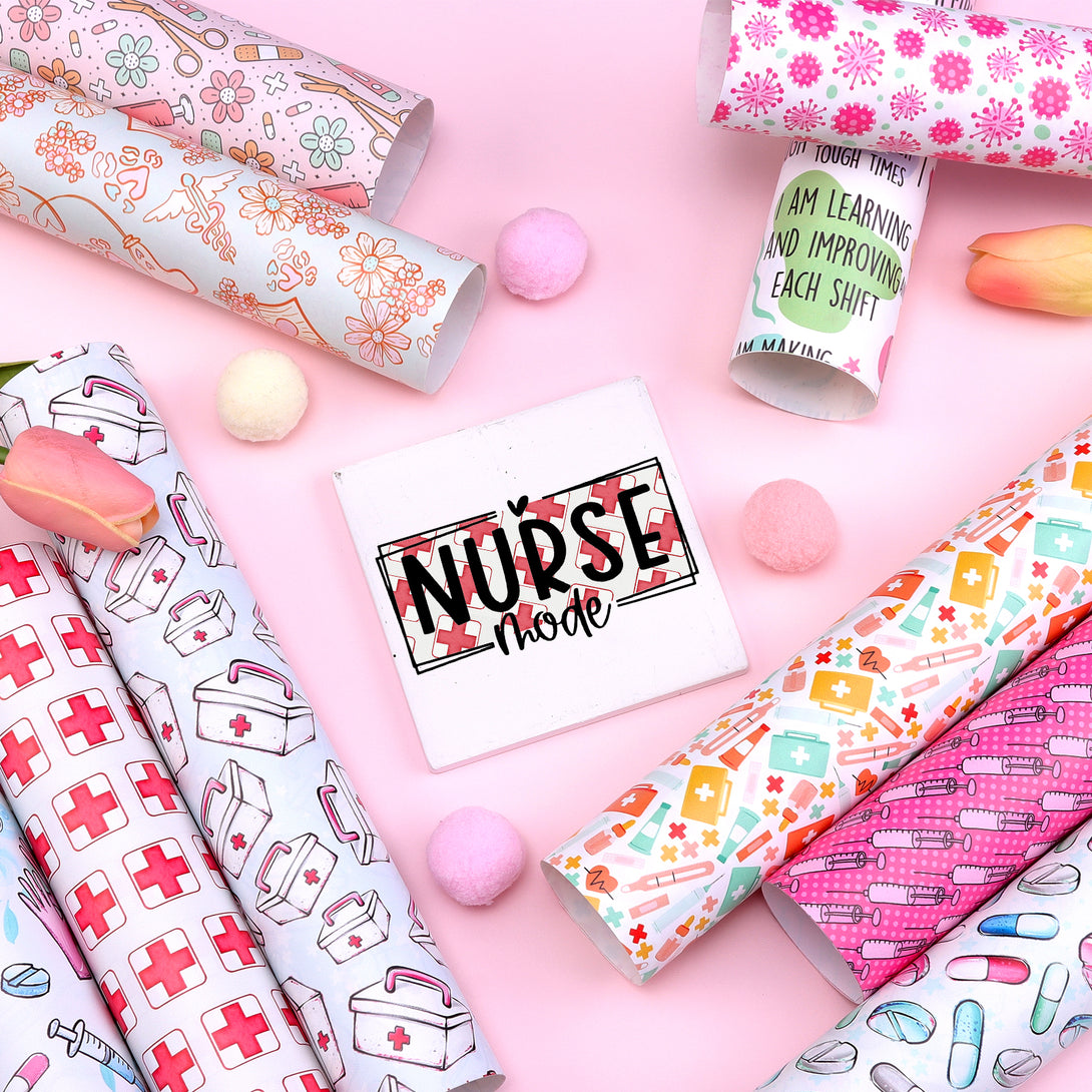 Tintnut Nurse Permanent Adhesive Vinyl,Red Cross Patterned Permanent Vinyl,Hospital Theme Patterned Permanent Adhesive Vinyl for Cutting Machine,Home Decor Self Sticker