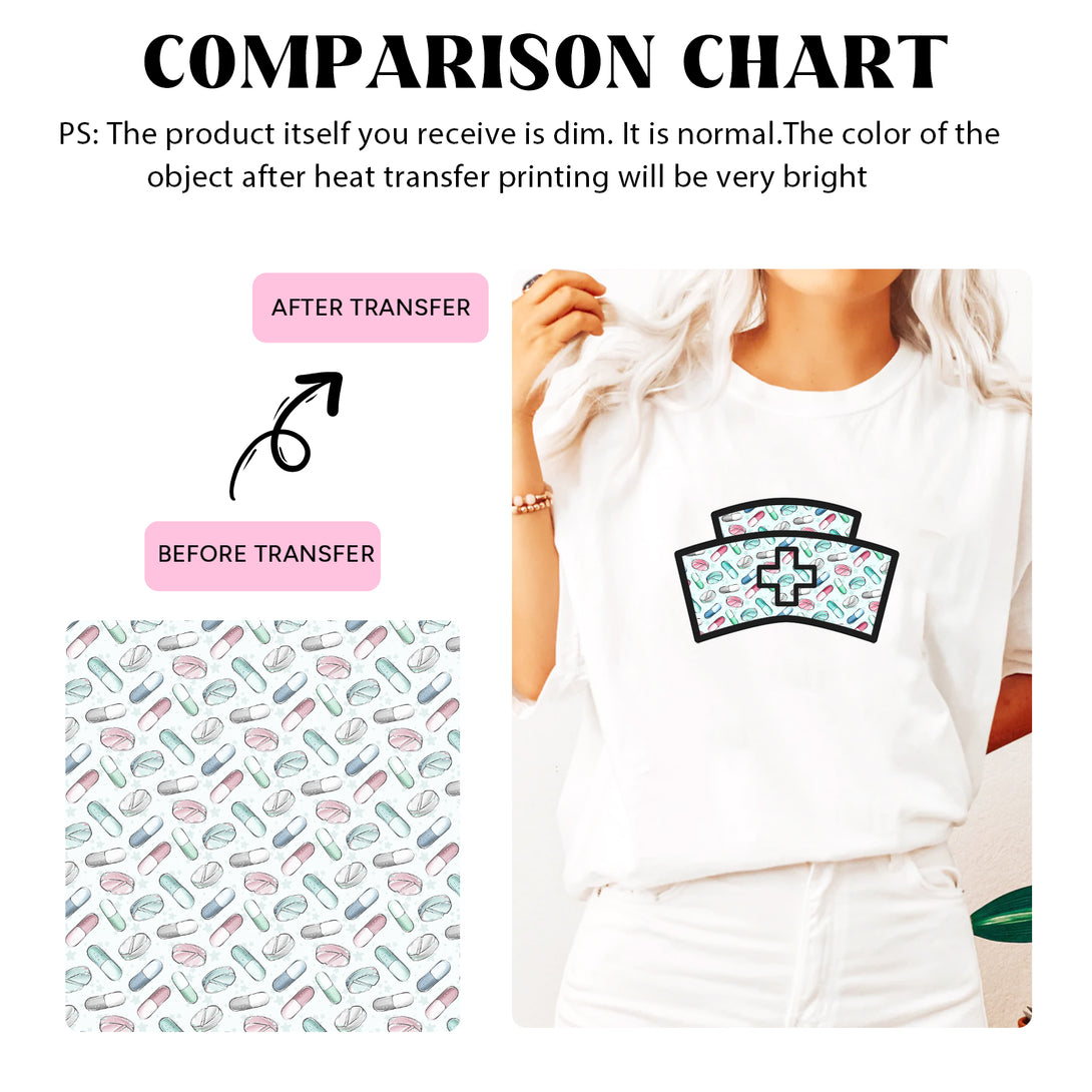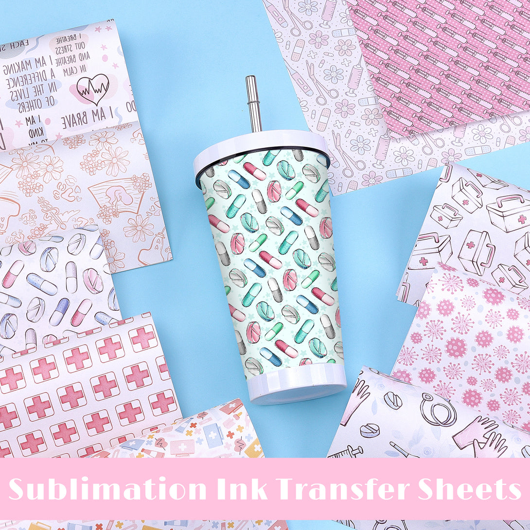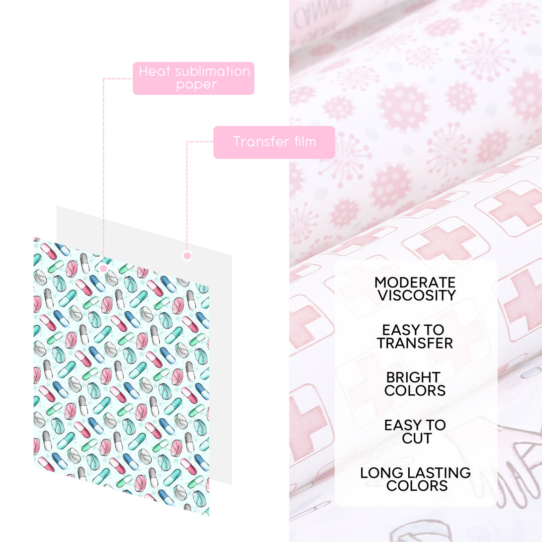 Tintnut Nurse Theme Sublimation Pattern Transfer Paper,Sublimation Transfer Sheets Compatible with ALL Machine and Easy to use Weed.