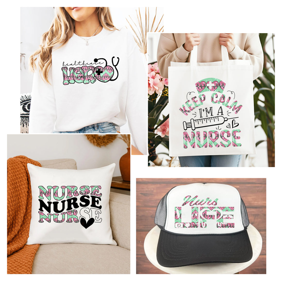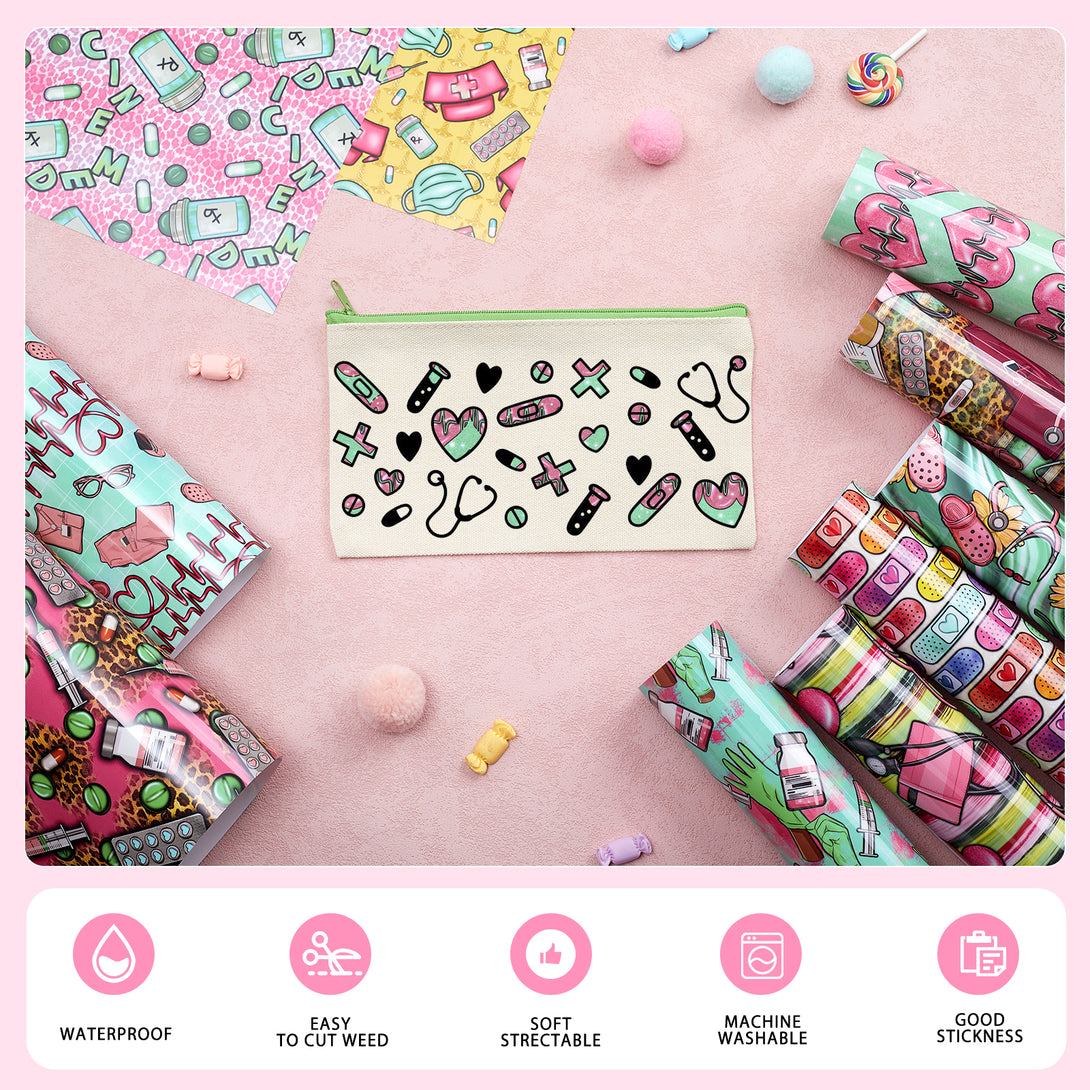 Tintnut Nurses Day Heat Transfer Vinyl Pink And Grass Green Color HTV Patterned HTV for Fabric HTV Vinyl Iron on Vinyl for T-Shirts DIY