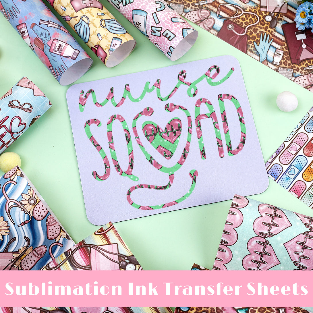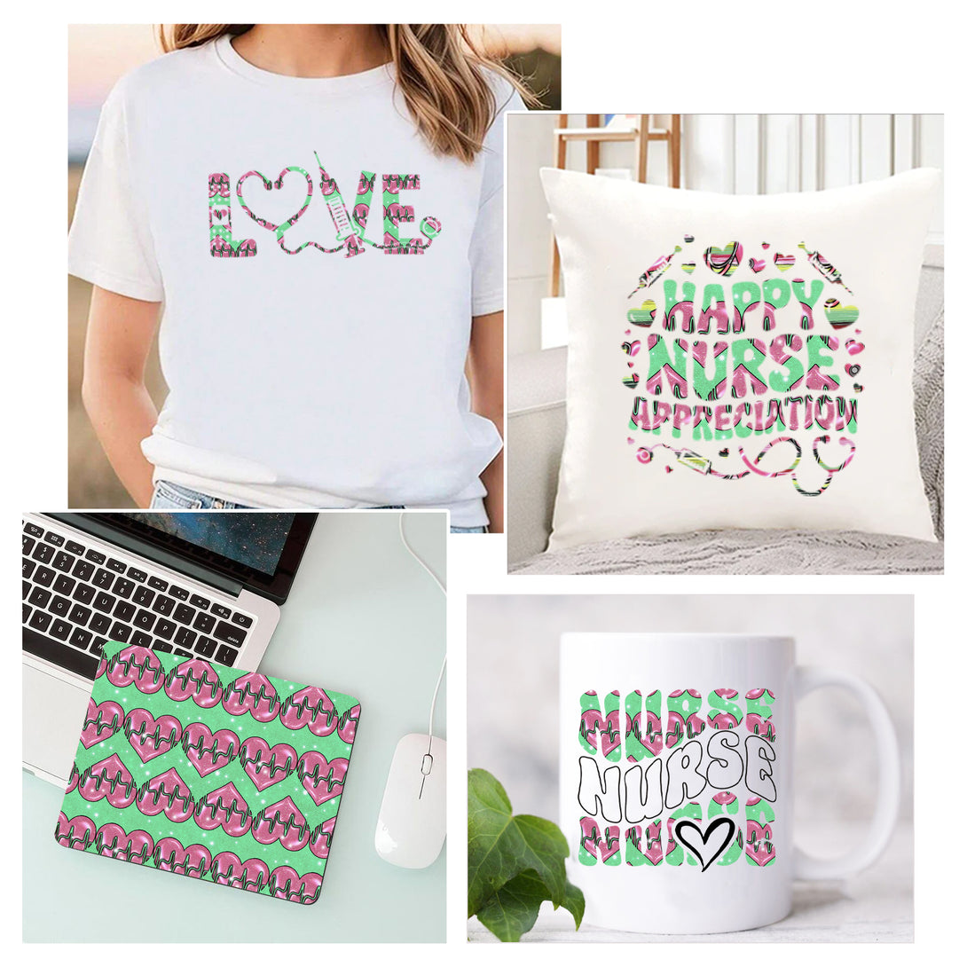 Tintnut Nurses Day Sublimation Transfer Paper,Pink And Grass Green Sublimation Transfer Sheets Compatible with Cricut for DIY Mugs,T-Shirts and Easy to use Transfer.