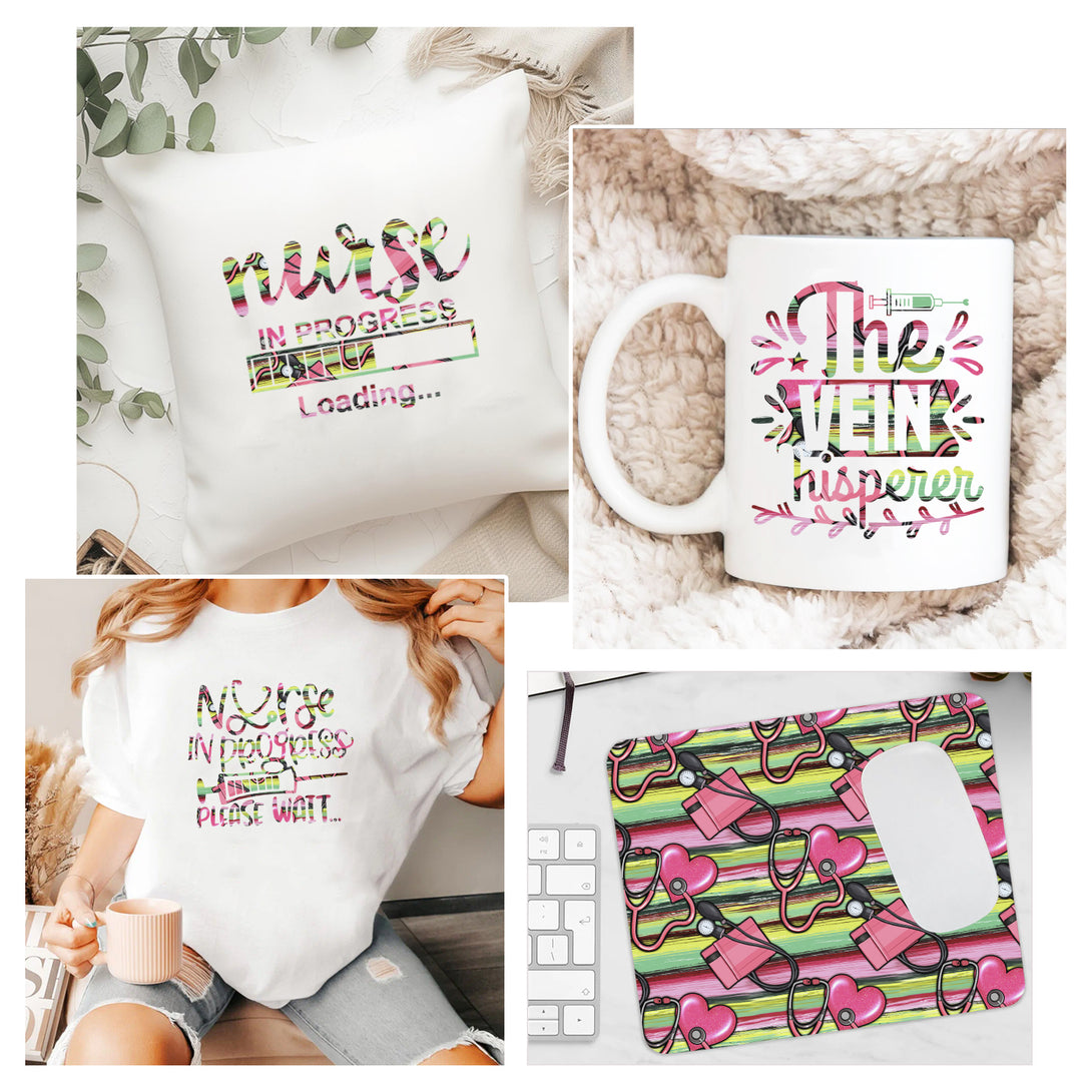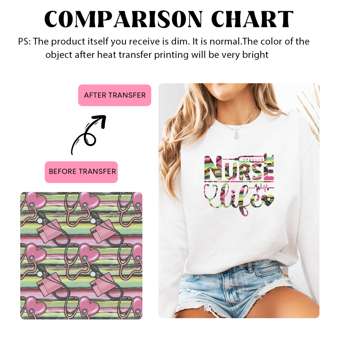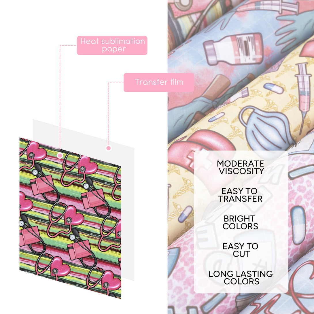 Tintnut Nurses Day Sublimation Transfer Paper,Pink And Light Green Sublimation Transfer Sheets Compatible with Cricut for DIY Mugs,T-Shirts and Easy to use Transfer.