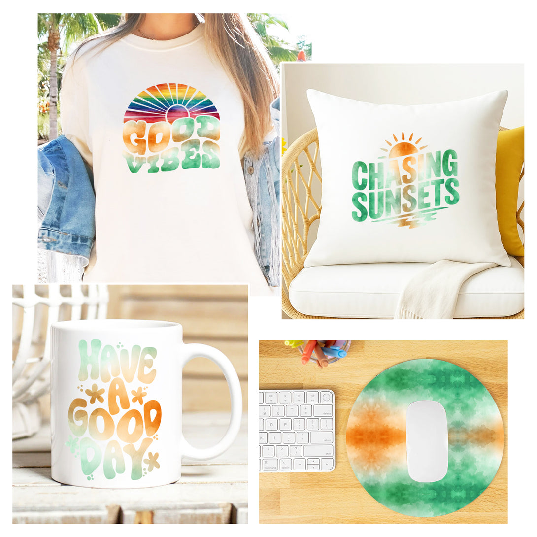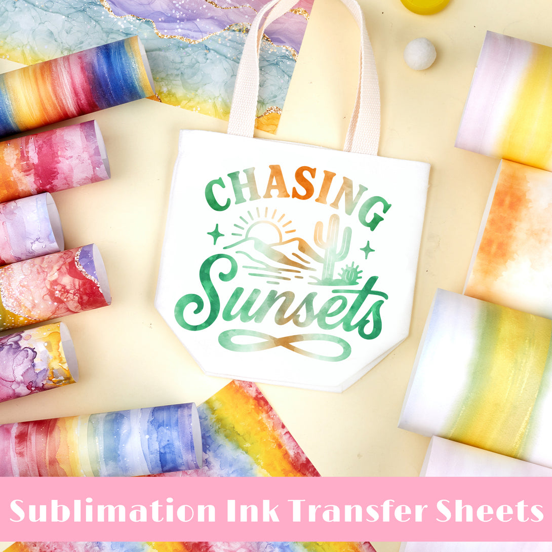 Tintnut Orange Green Gradient Rainbow Watercolor Pattern Sublimation Transfer Paper,Sublimation Transfer Sheets Compatible with Cricut for DIY Mugs,T-Shirts and Easy to use Weed.