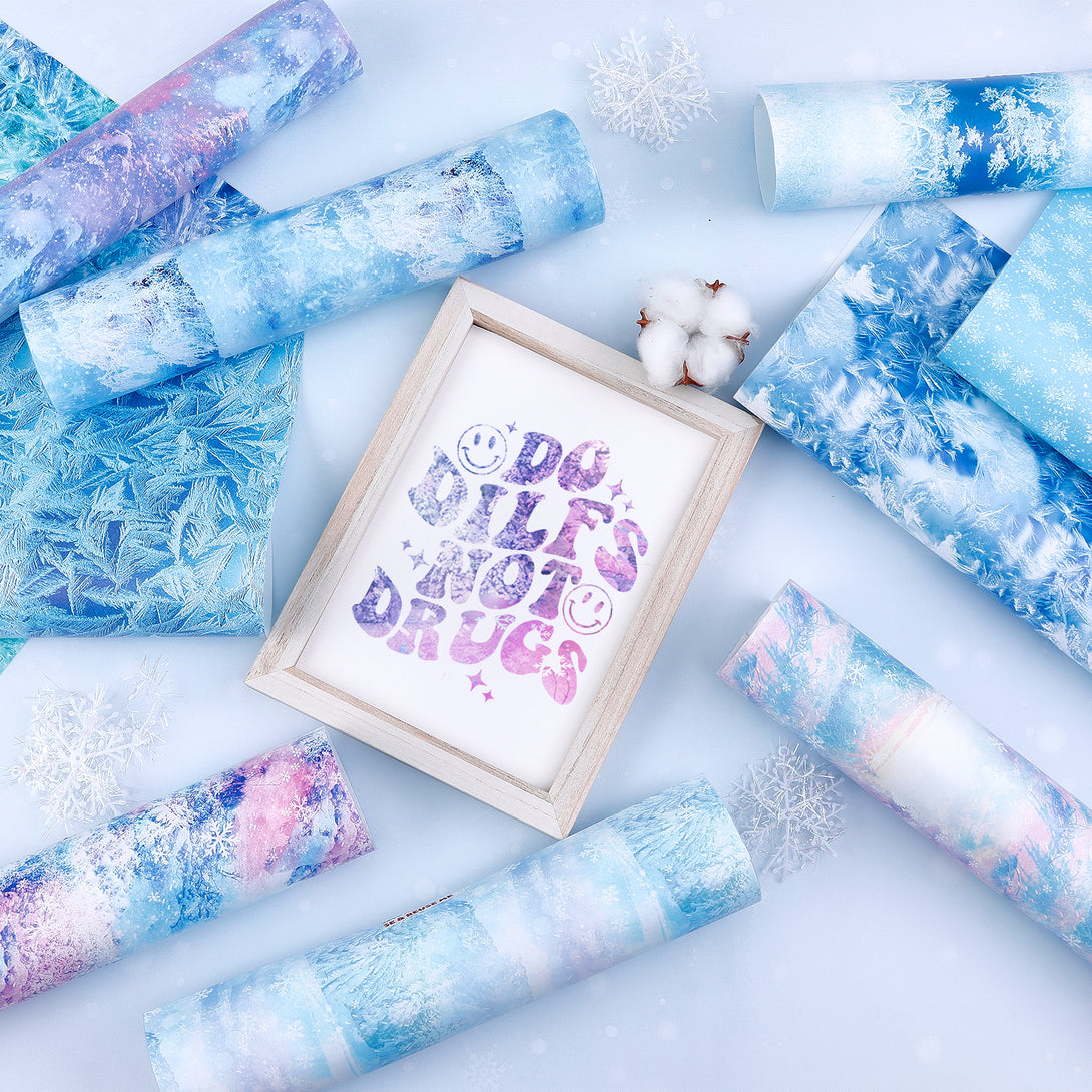Tintnut Permanent Vinyl, Snowflake Permanent Adhesive Vinyl Sheets,Winter Snowscape Pattern Self Sticker Water proofing Vinyl