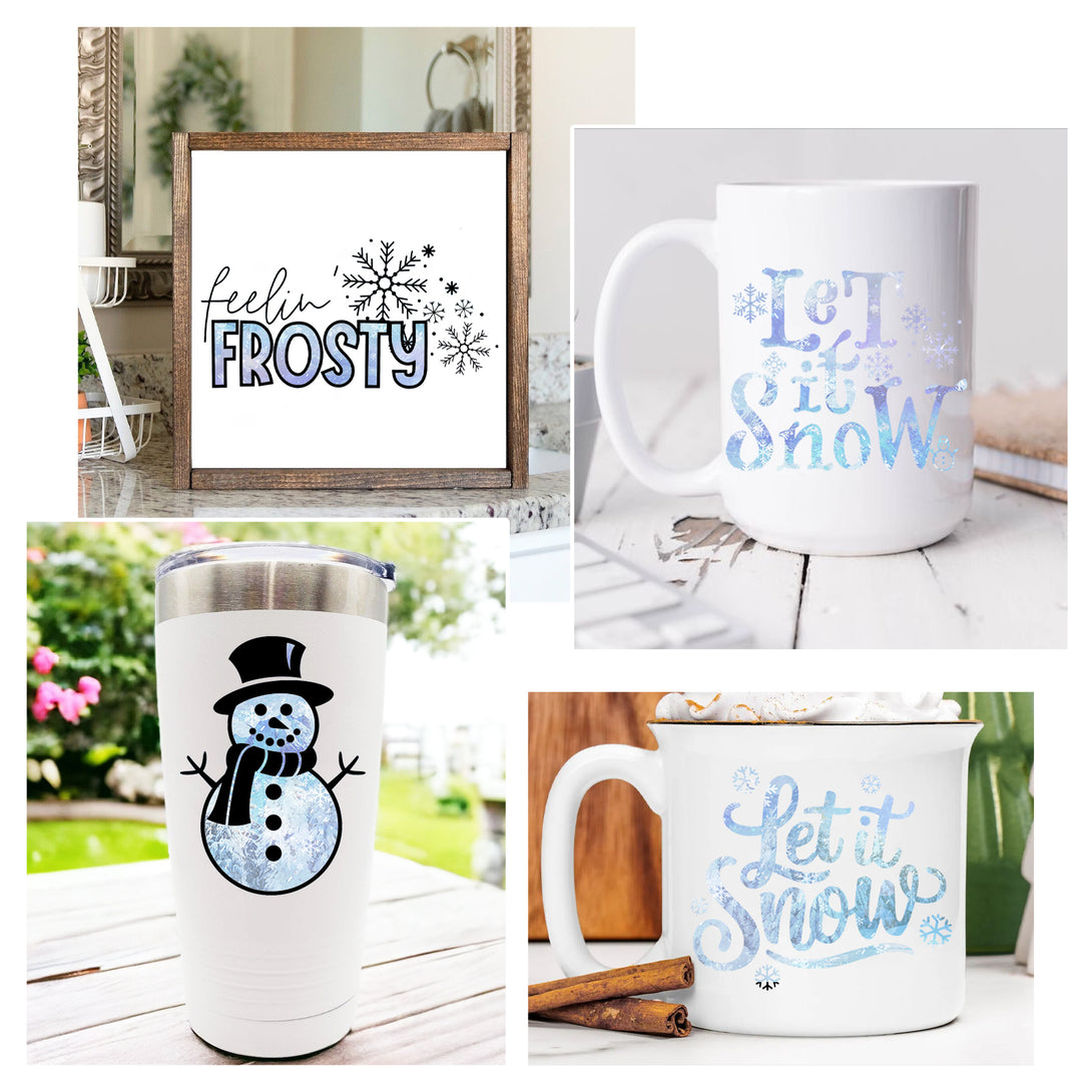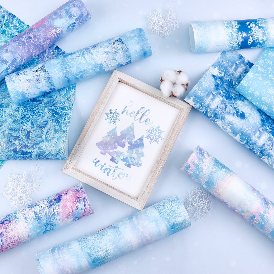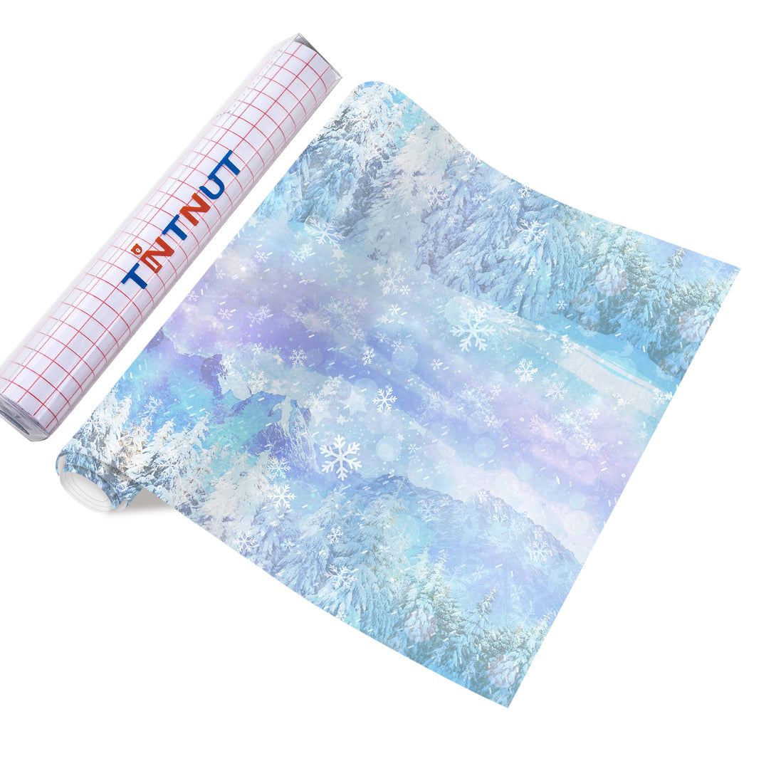 Tintnut Permanent Vinyl, Snowflake Permanent Adhesive Vinyl Sheets, Winter Snowscape Pattern Self Sticker Water proofing Vinyl Compatible with Cricut Or Silhouette