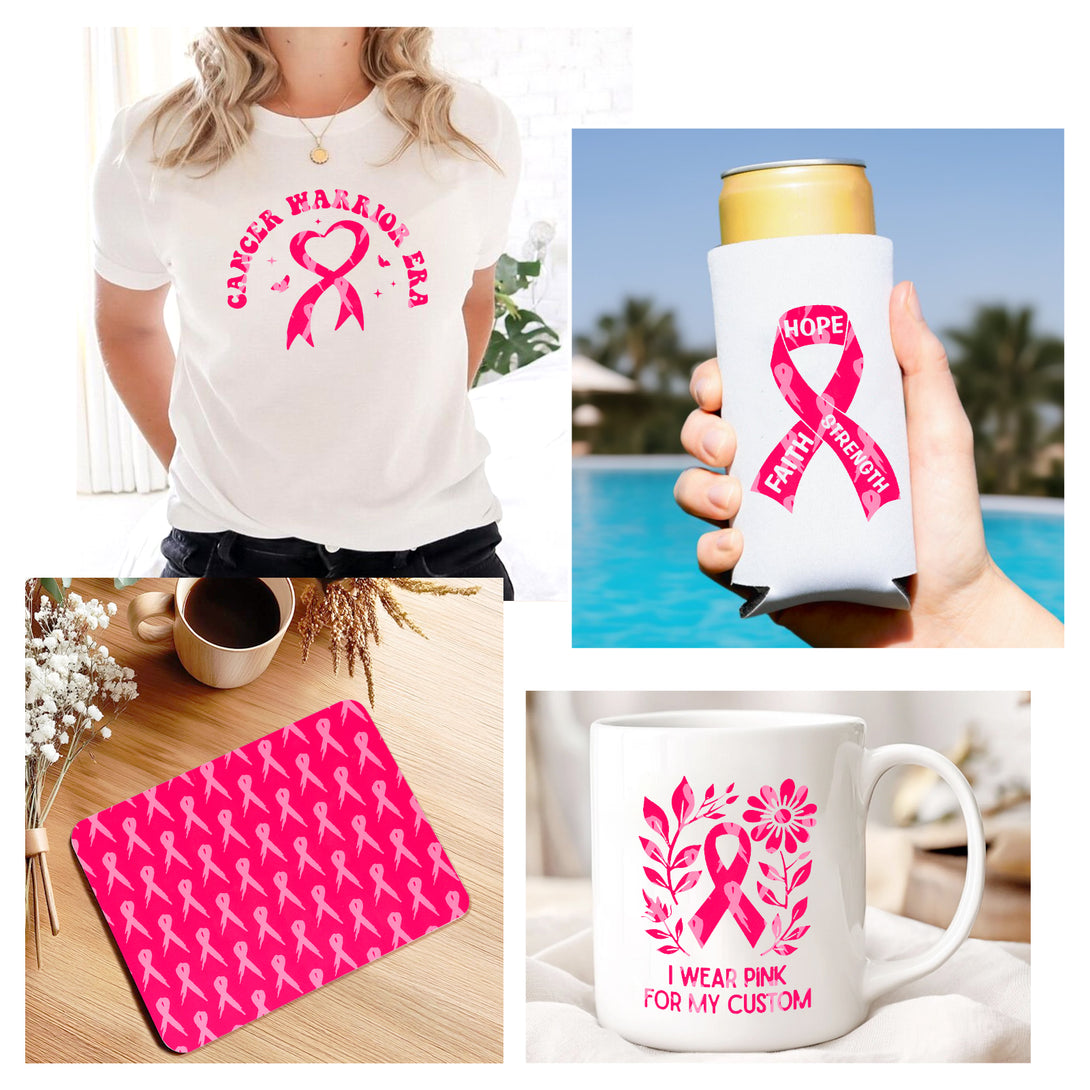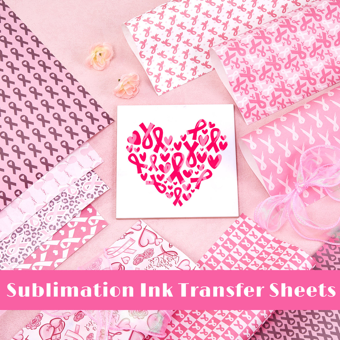 Tintnut Pink Ribbon Pattern Sublimation Transfer Paper,Breast Cancer Sublimation Ink Transfer Sheets Compatible with Cricut for DIY Mugs,T-Shirts and Easy to use Transfer.