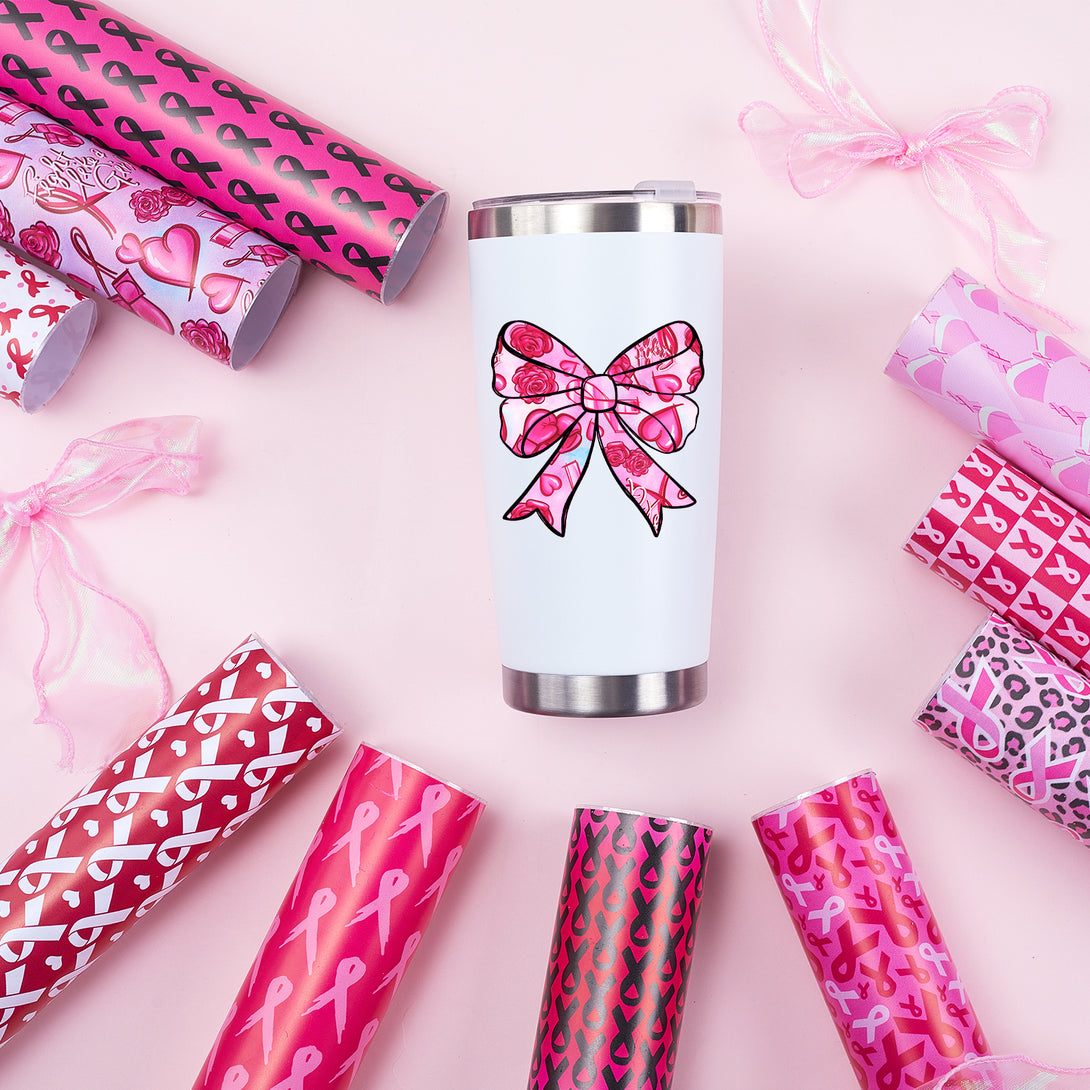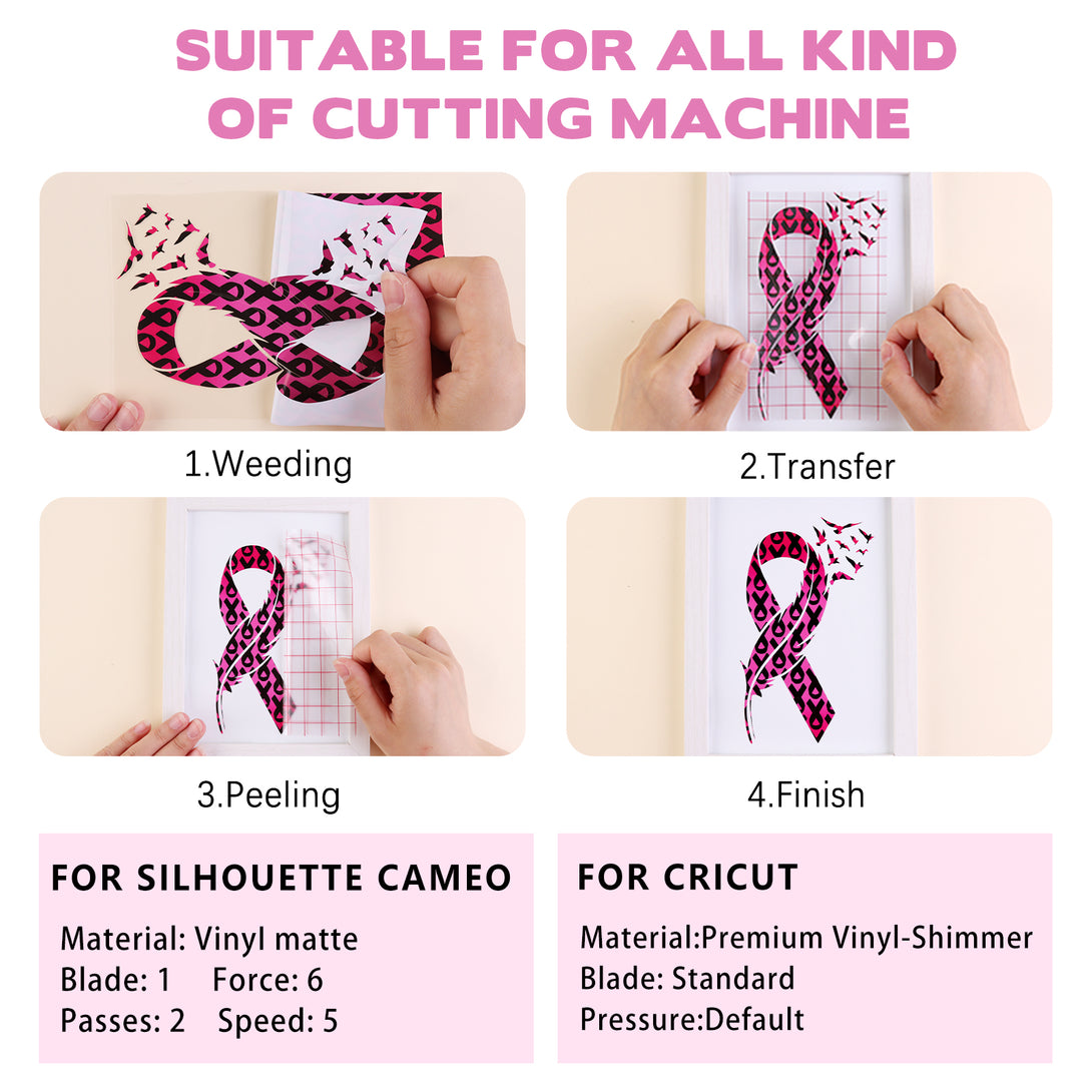 Tintnut Pink Ribbon Permanent Vinyl,Breast Cancer Awareness Vinyl Compatible with Cricut Machine,Waterproof Vinyl for Home Decor Self Sticker