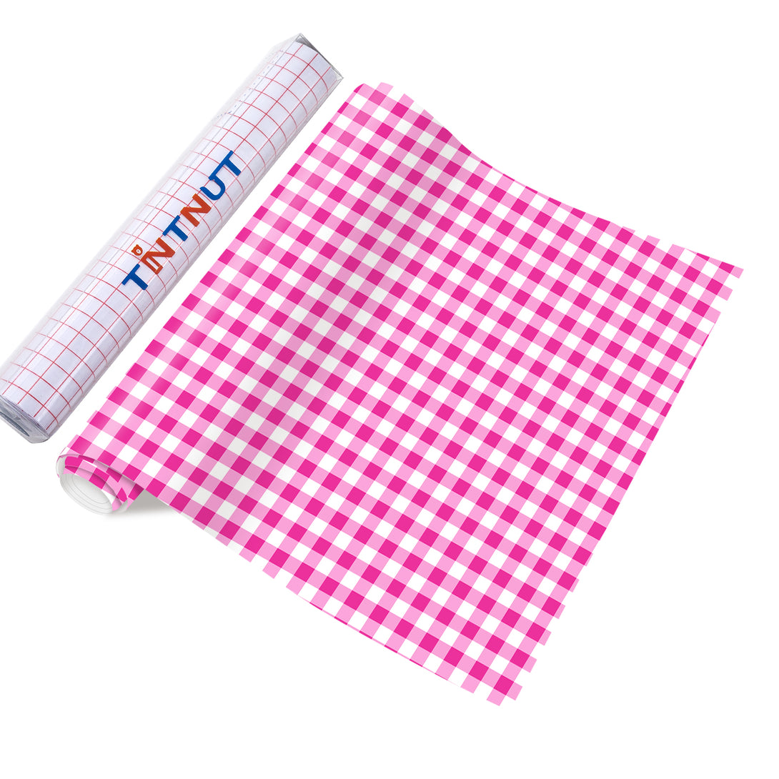 Tintnut Plaid Pattern Permanent Vinyl,Permanent Adhesive Vinyl for Decor Sticker, Self Sticker Water proofing Vinyl