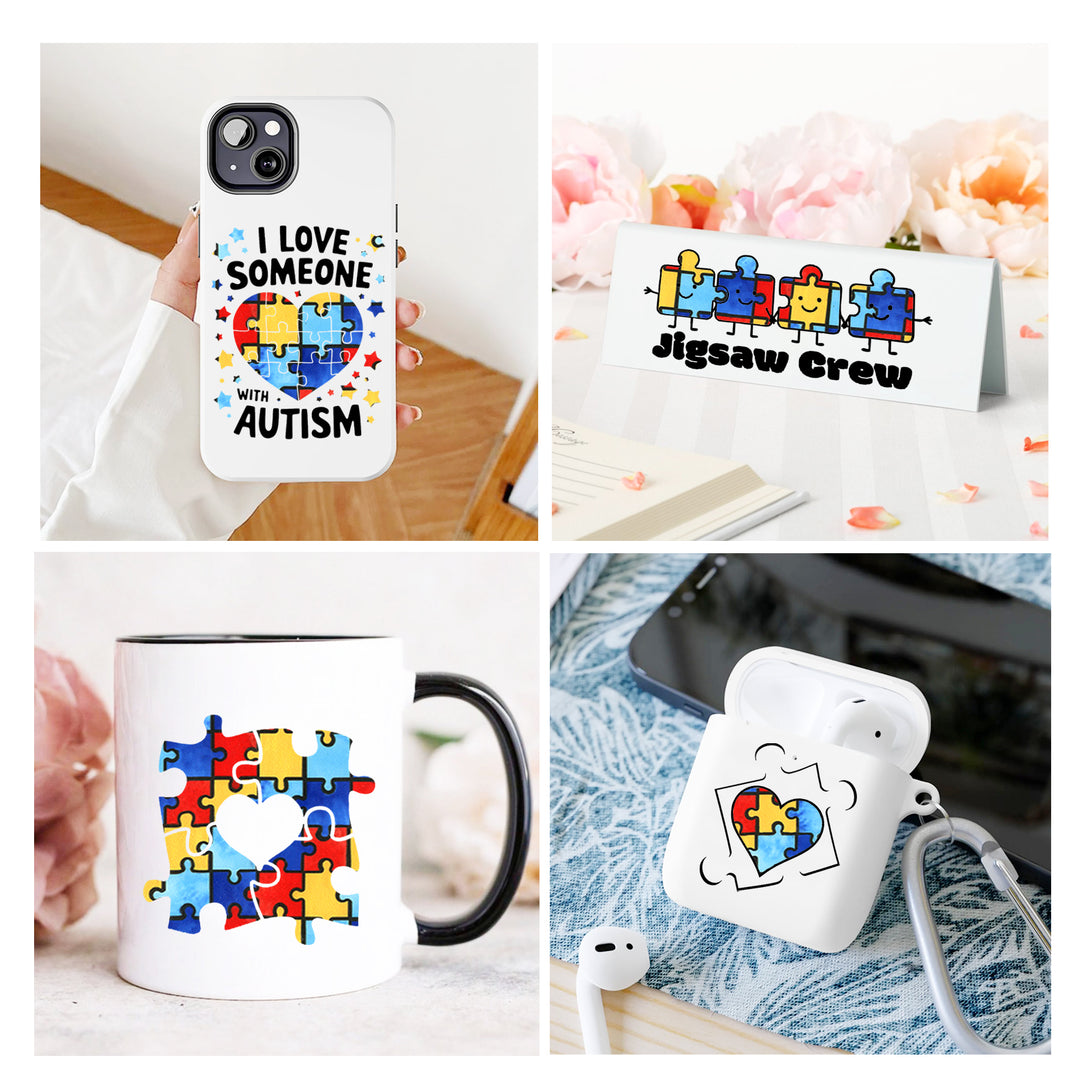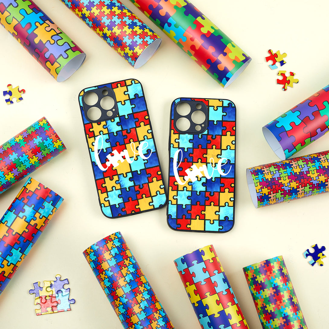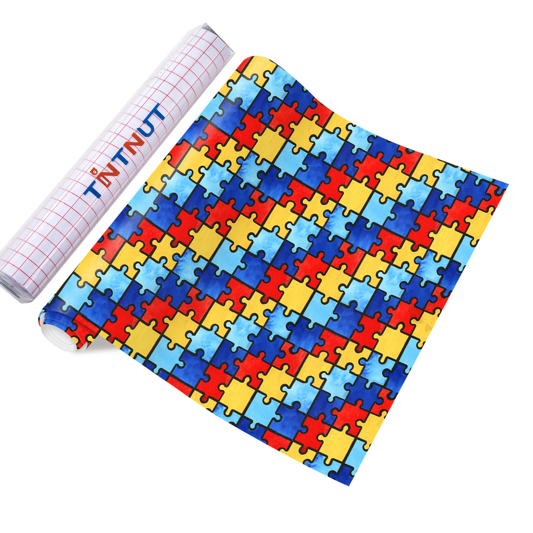 Tintnut Puzzles Adhesive Vinyl, Autism Awareness Puzzles Permanent Vinyl, Adhesive Vinyl Sheets, Pattern Self Sticker Water proofing Vinyl