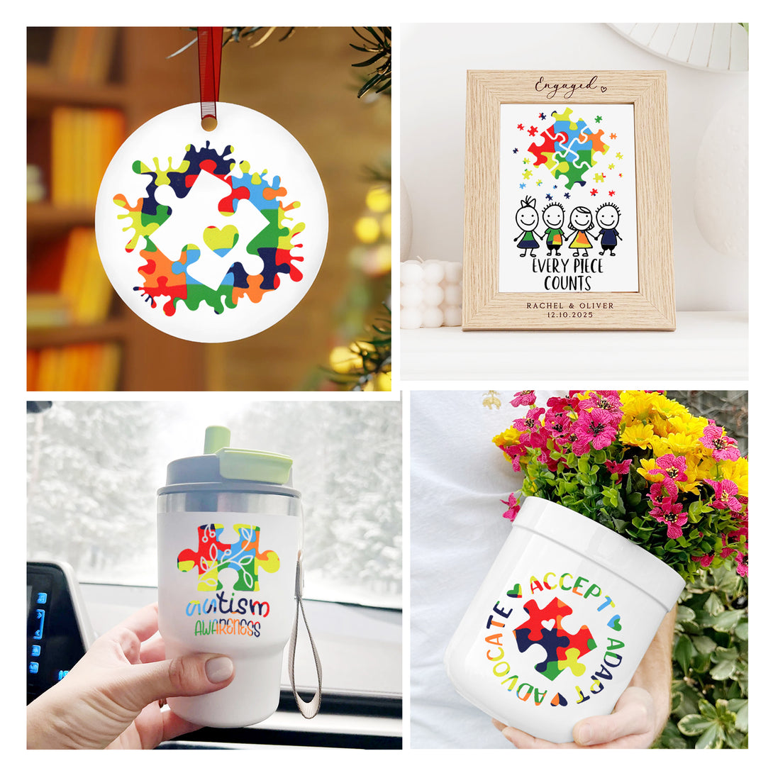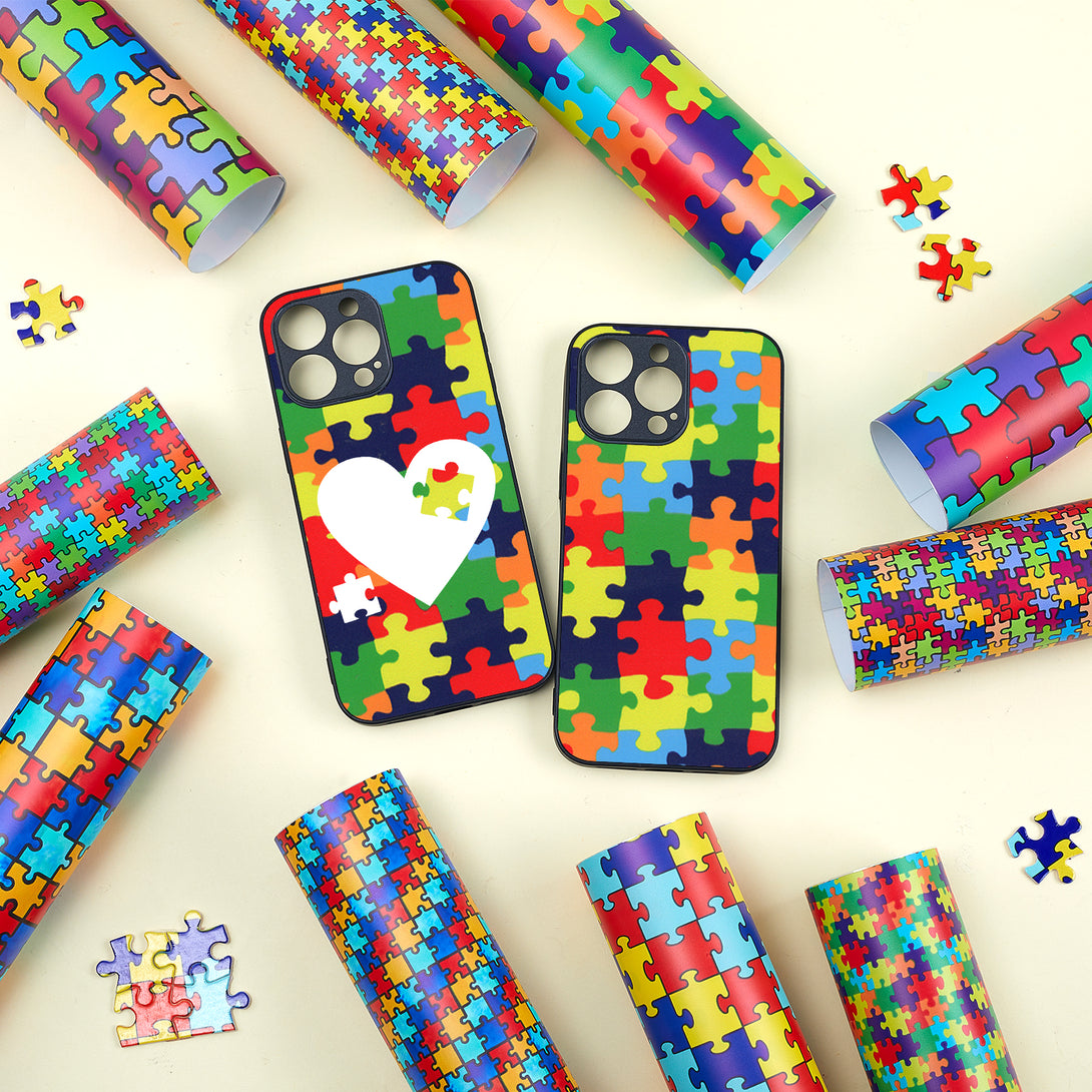 Tintnut Puzzles Adhesive Vinyl, Autism Awareness Puzzles Permanent Vinyl, Permanent Vinyl Sheets, Pattern Self Sticker Water proofing Vinyl