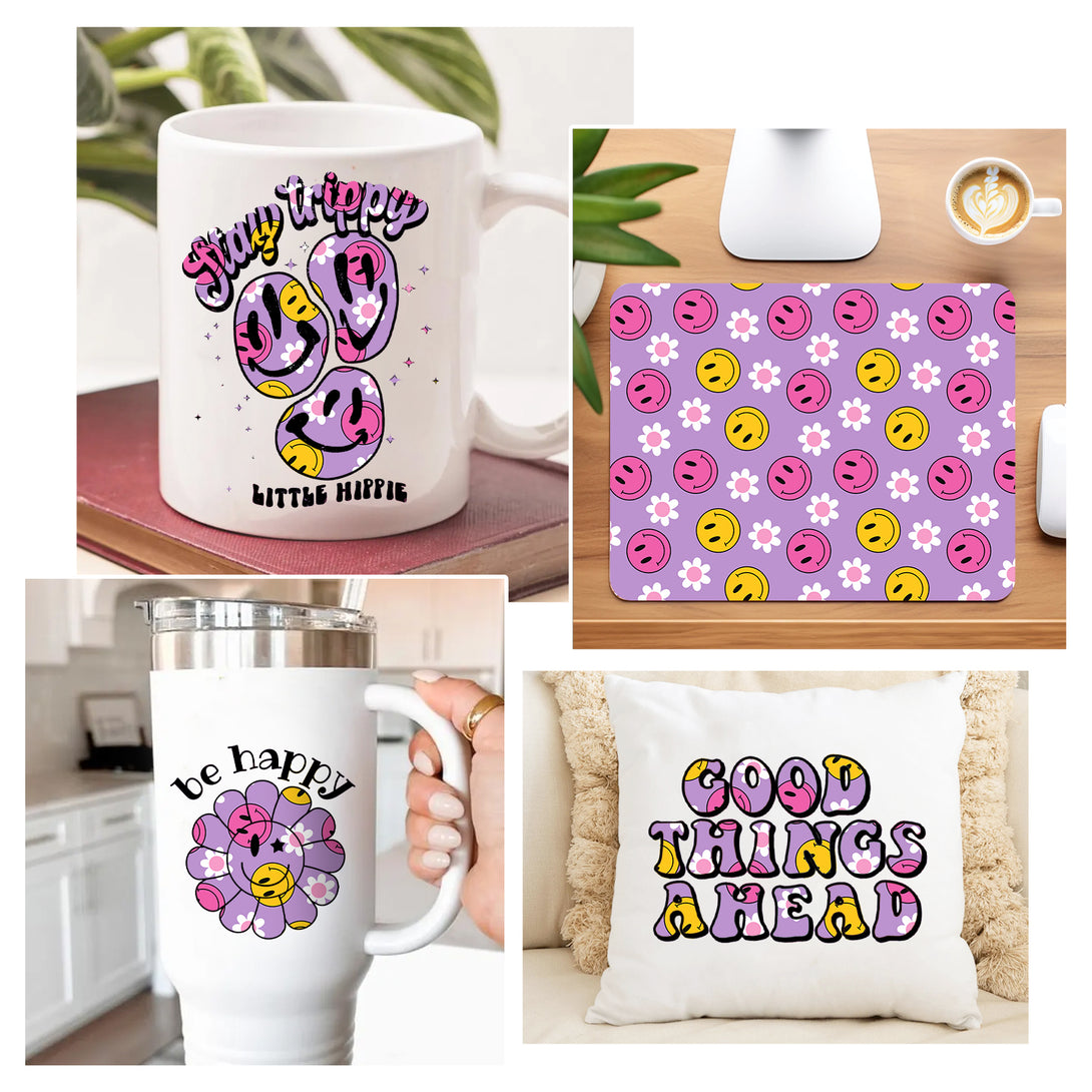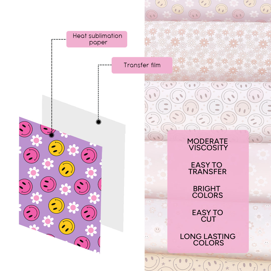 Tintnut Retro Smiley Face Sublimation Transfer Paper,Smiley Face Pattern Sublimation Transfer Sheets Compatible with Cricut for DIY Mugs,T-Shirts and Easy to use Weed.